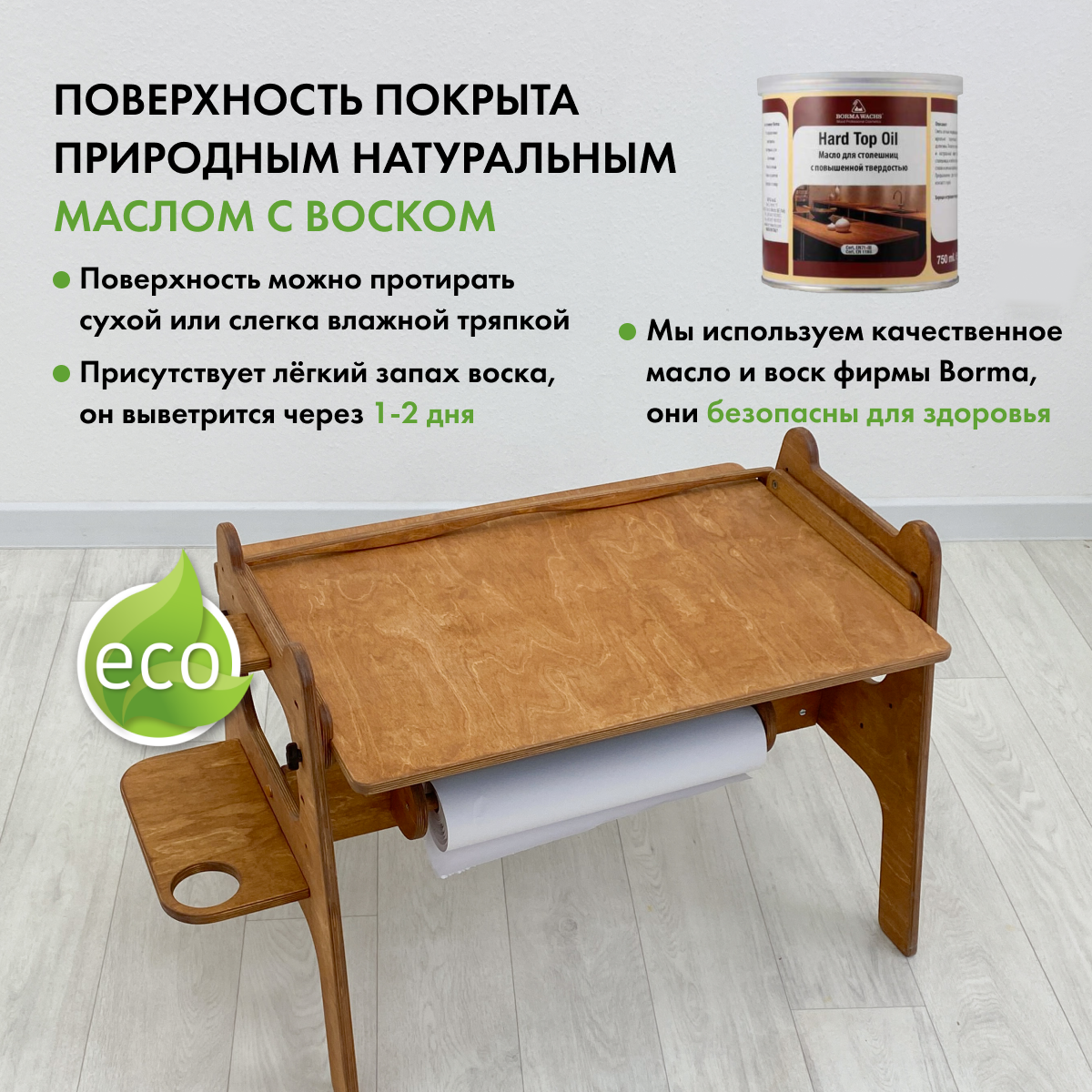 Стол детский Малышок - парта трансформер, прозрачное масло и белый акрил
