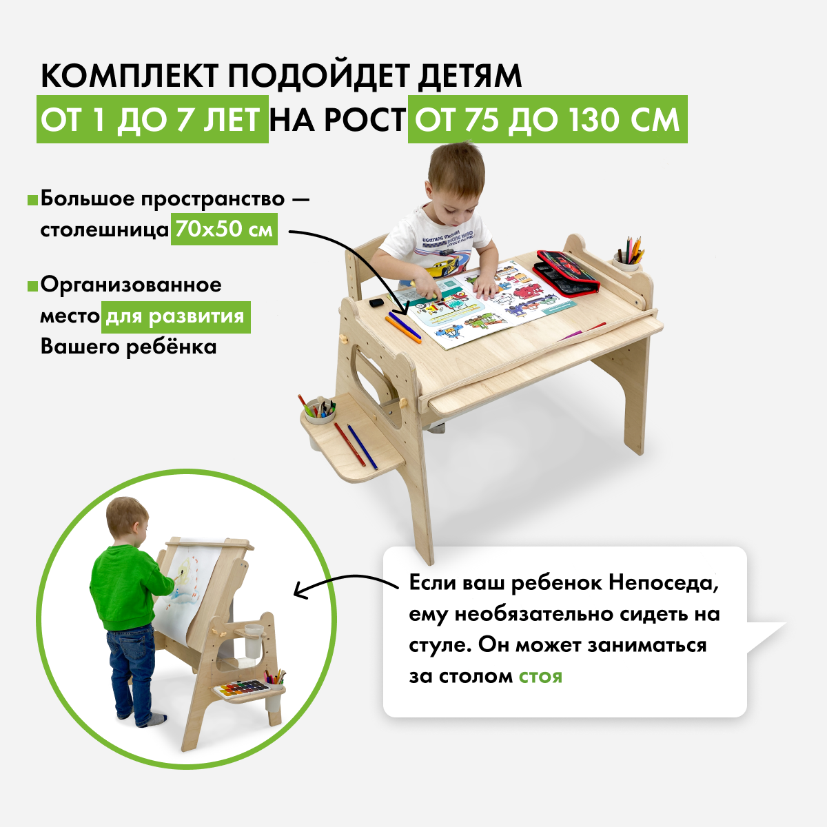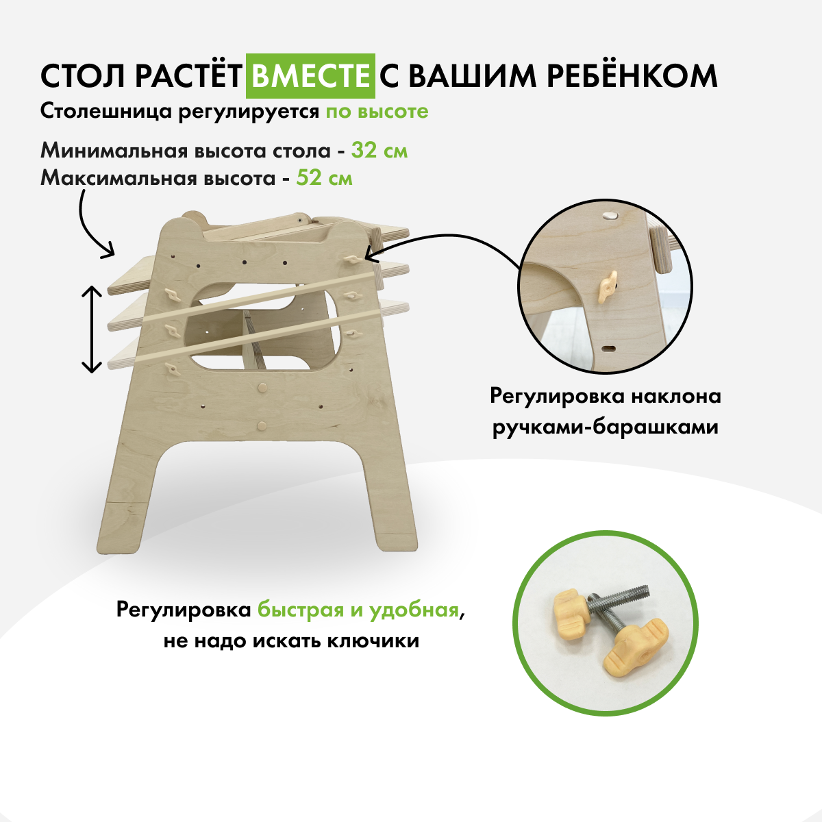 Стол детский Малышок - парта трансформер, без покрытия интересное: