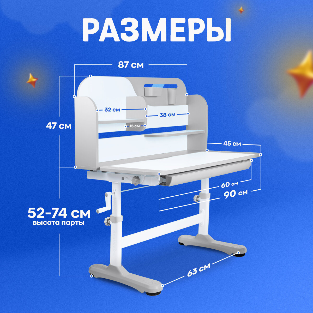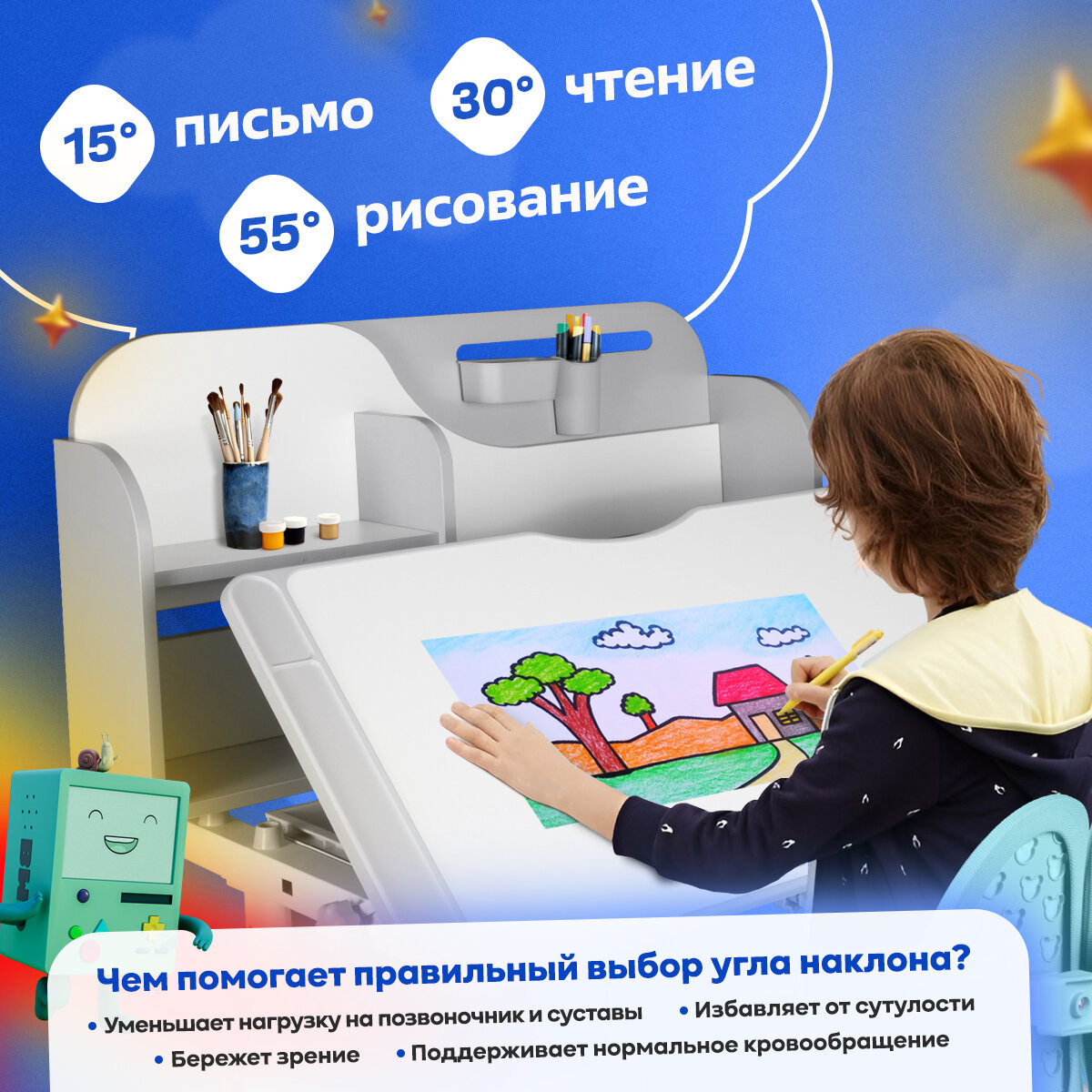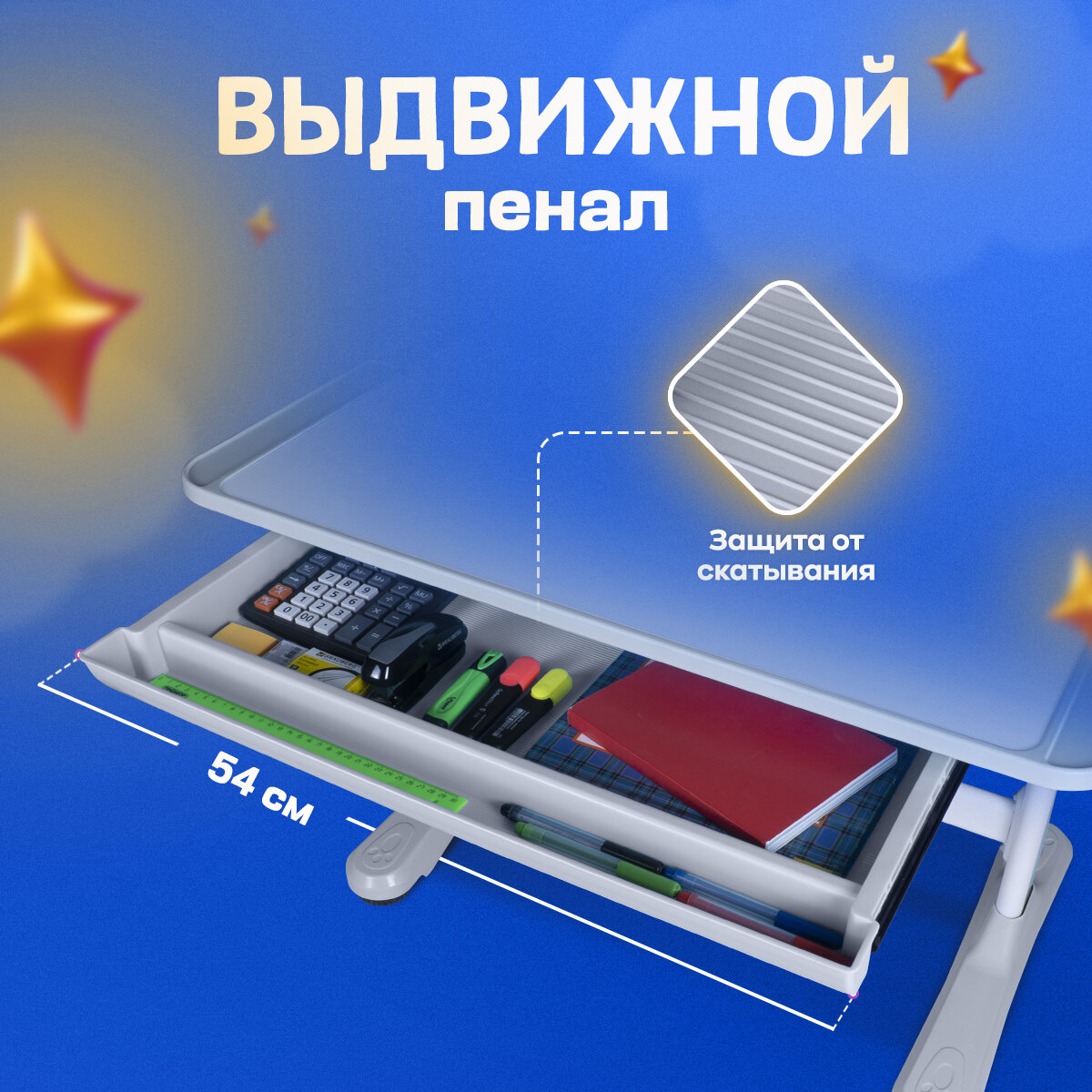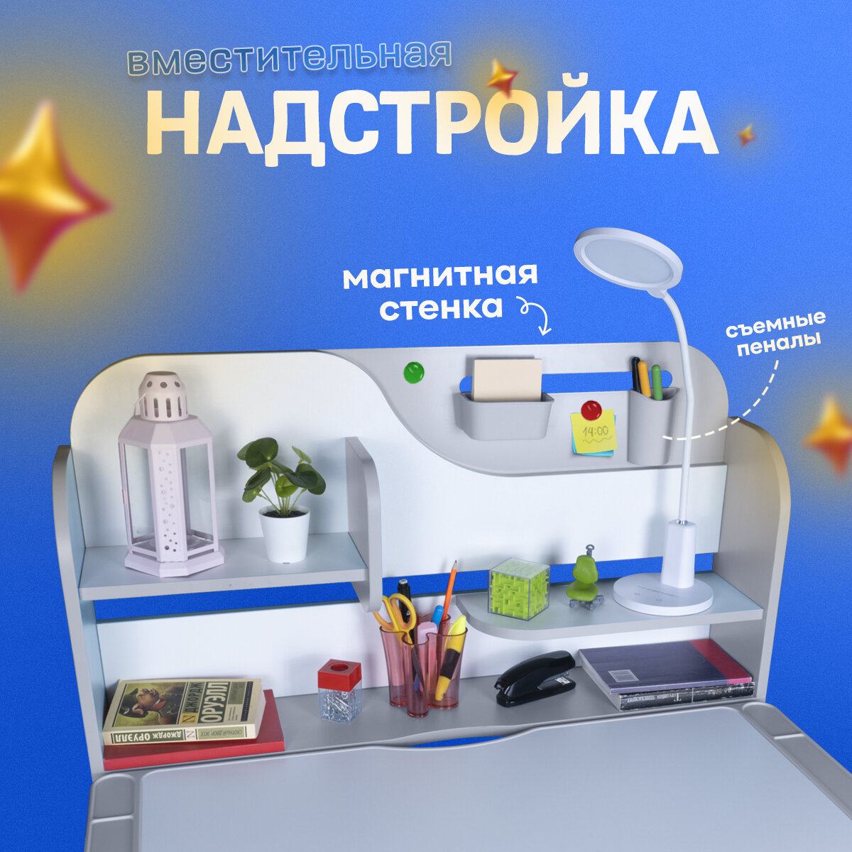 Растущая парта для школьника Rumbik Smart серая, детский деревянный письменный стол с регулировкой высоты