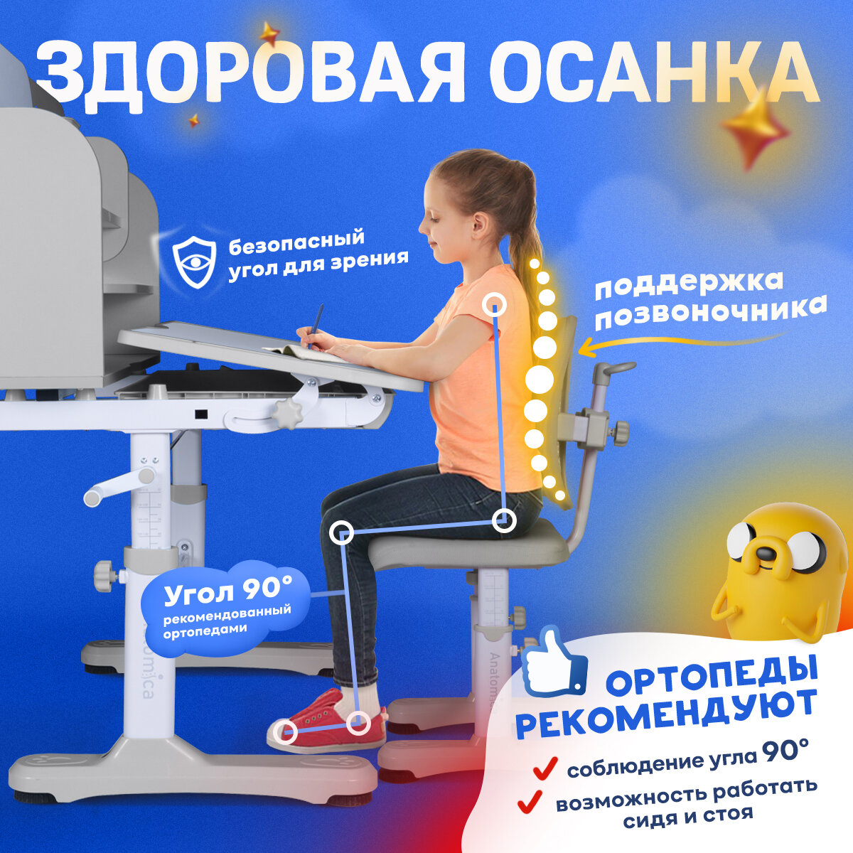 Комплект Anatomica Amadeo парта + стул + надстройка + выдвижной ящик серый интересное: