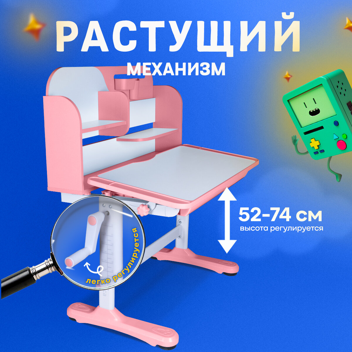 Растущая парта для школьника Rumbik Smart серая, детский деревянный письменный стол с регулировкой высоты