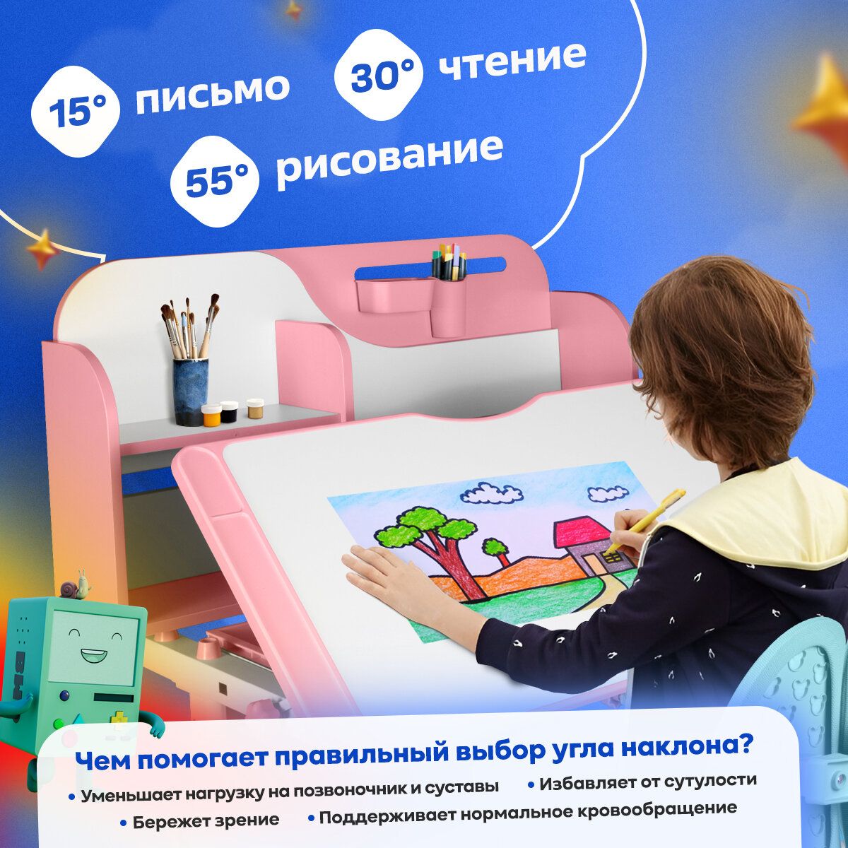 Комплект Anatomica Amadeo парта + стул + надстройка + выдвижной ящик розовый интересное:
