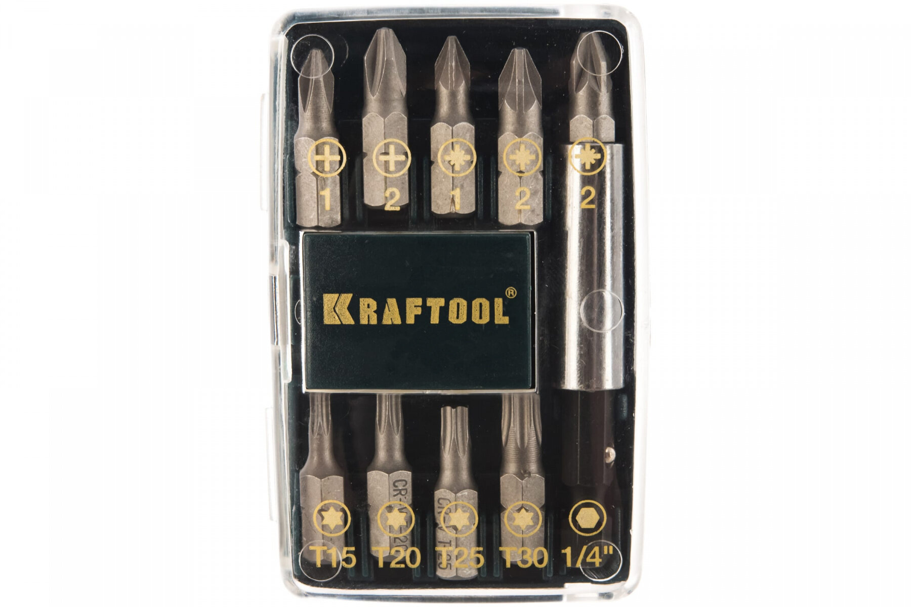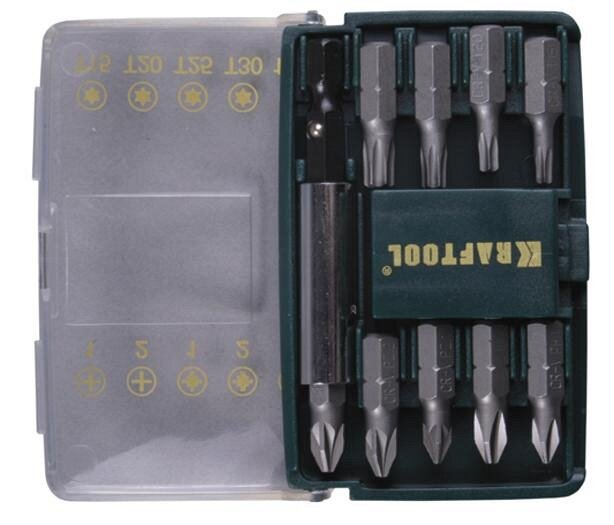 Набор бит Kraftool, 10 шт, магнитный адаптер, плотный бокс