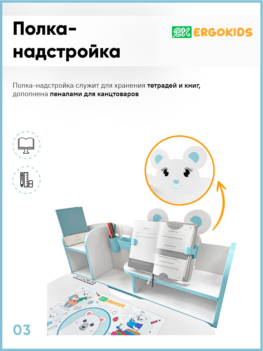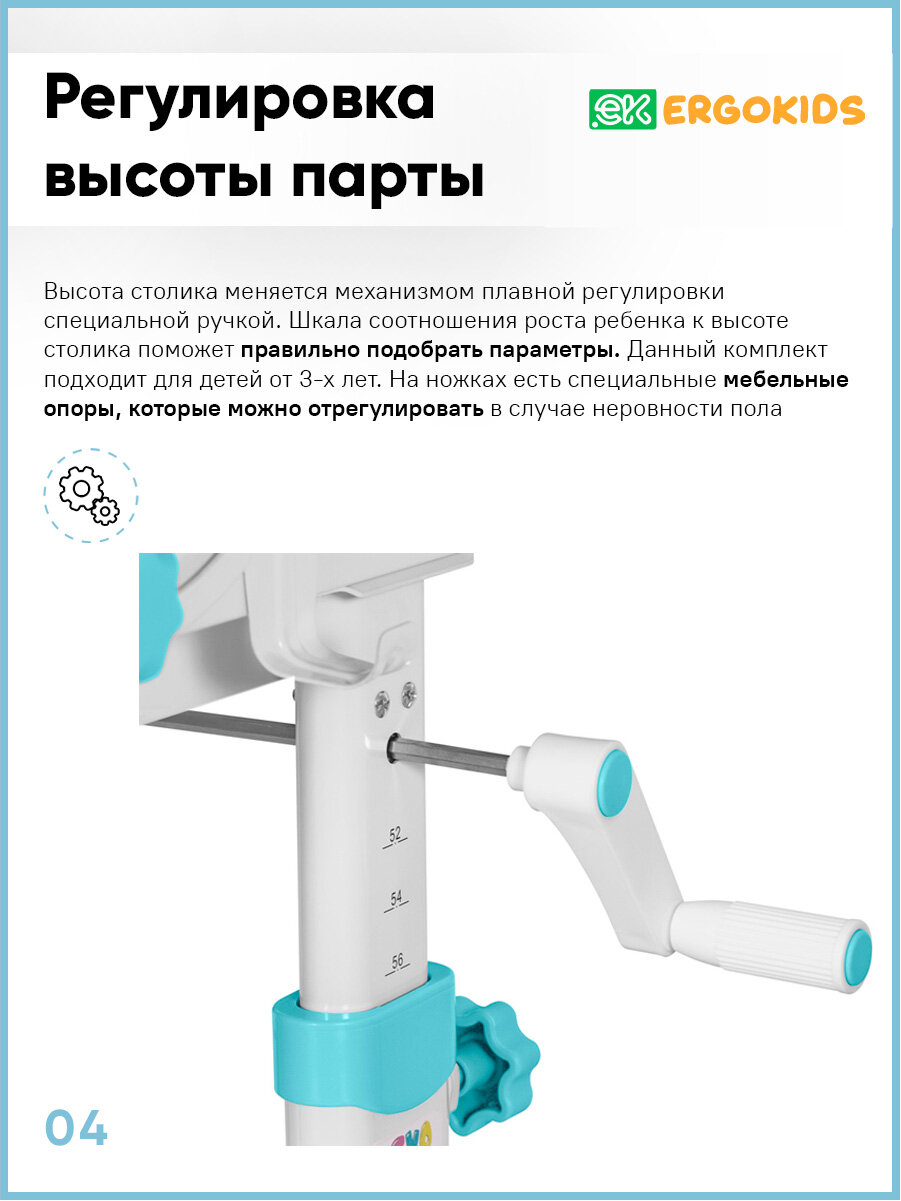 Растущий детский столик со стульчиком Ergokids Panda XL BD-29 BL кресло с регулировкой глубины ширина столешницы 88 см интересное: