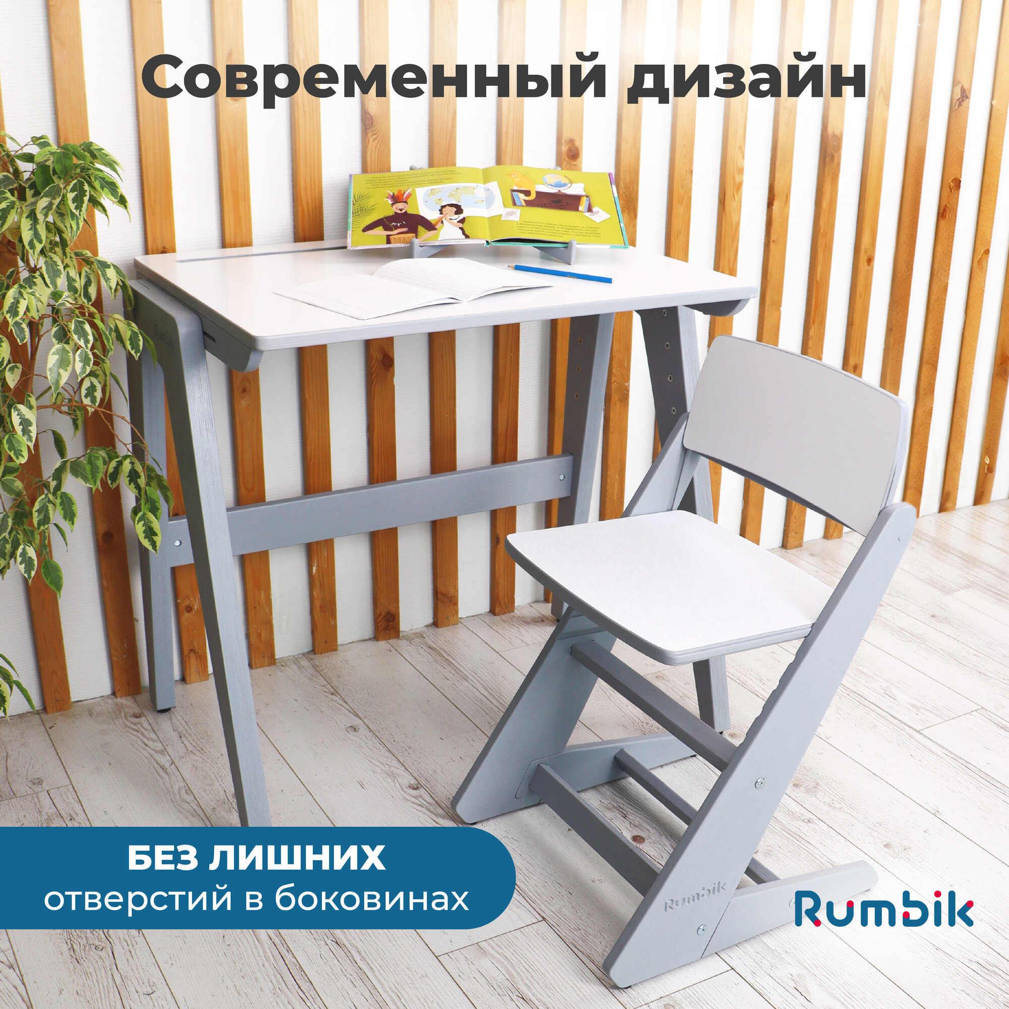 Купить Растущая парта для школьника Rumbik Smart серая, детский деревянный письменный стол с регулировкой высоты