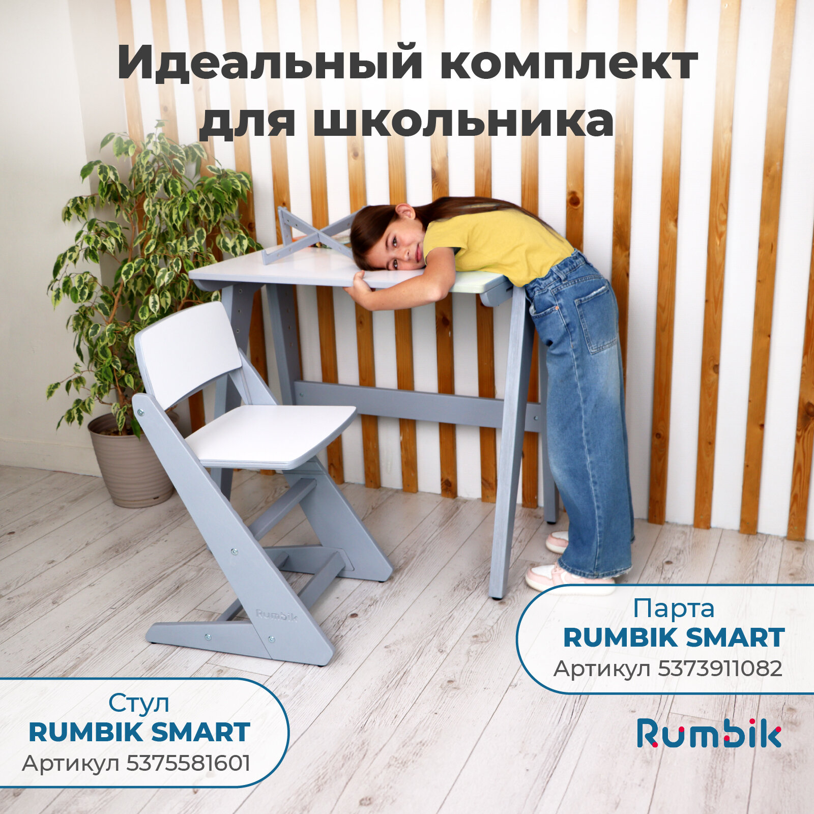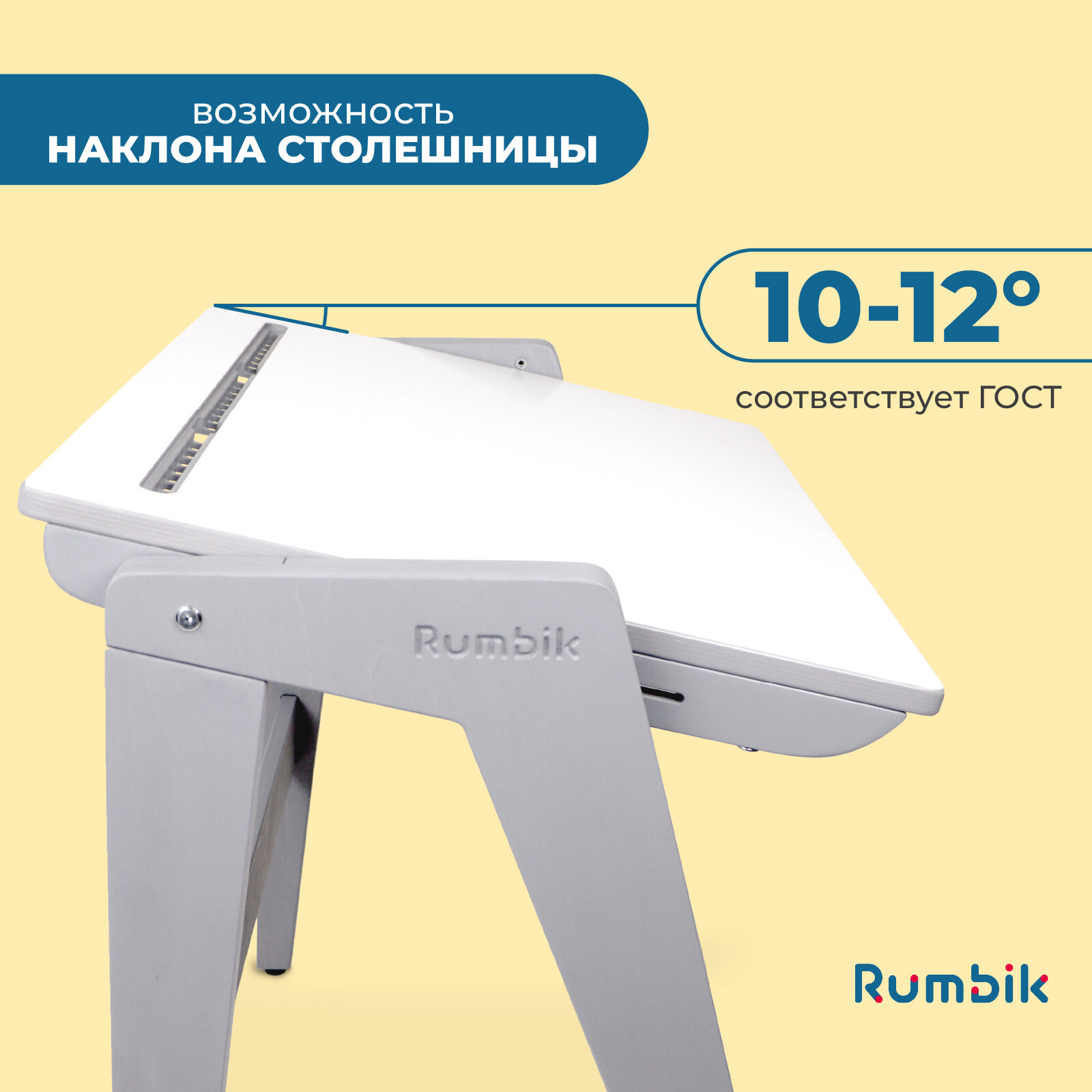 Растущая парта для школьника Rumbik Smart серая, детский деревянный письменный стол с регулировкой высоты интересное: