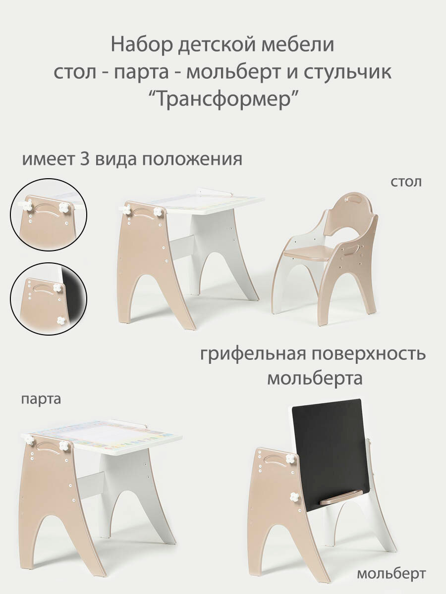 СохранитьДетский стол и стул Tech kids Части света латте интересное: