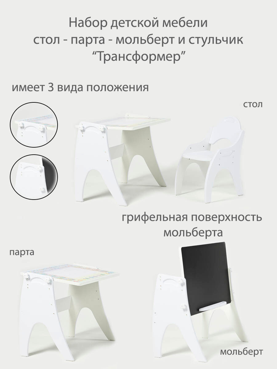 Набор детской мебели Тех Кидс Трансформер Части света Белый глянцевый