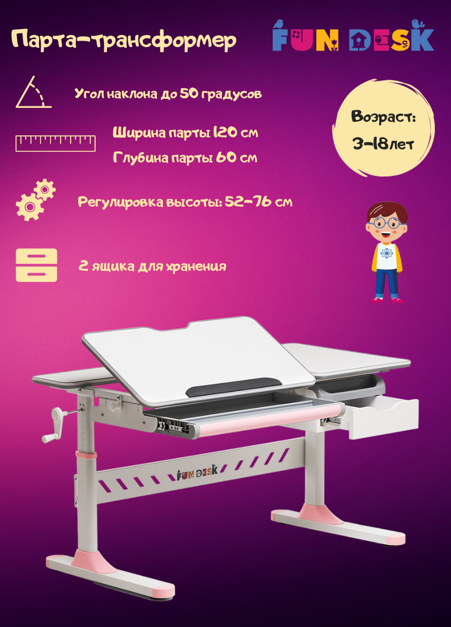 Растущая парта FUNDESK Fiore, розовая, МДФ, выдвижные ящики интересное: