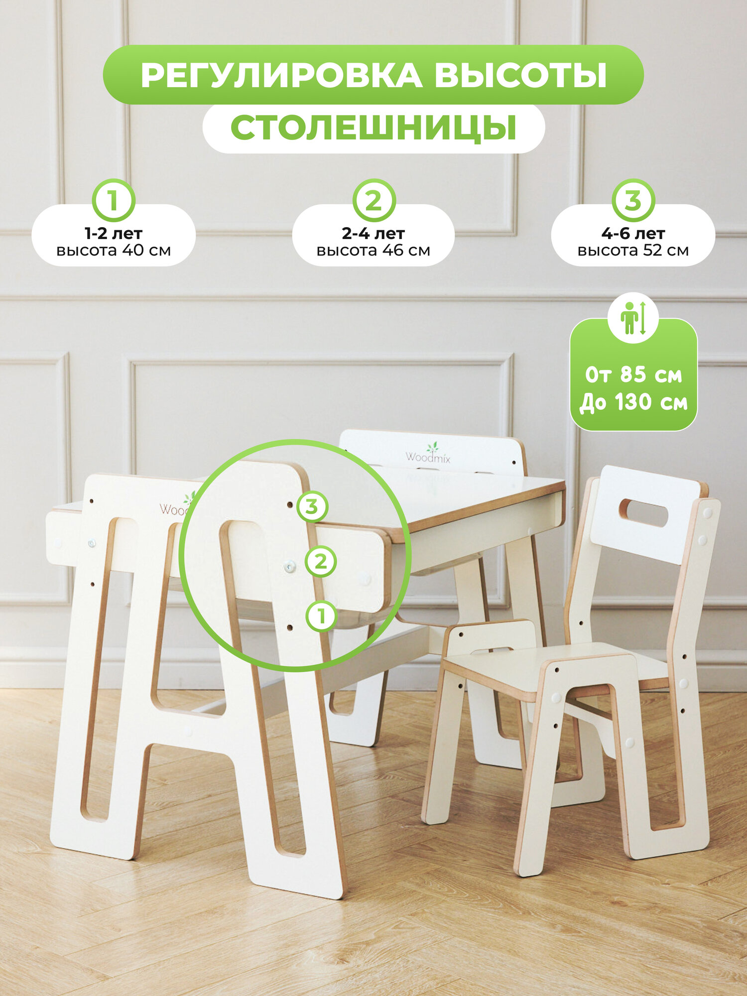 Растущая мебель - комплект стола и стула для детей от 0 до 6 лет WoodMix интересное: