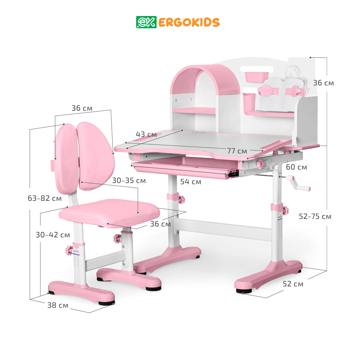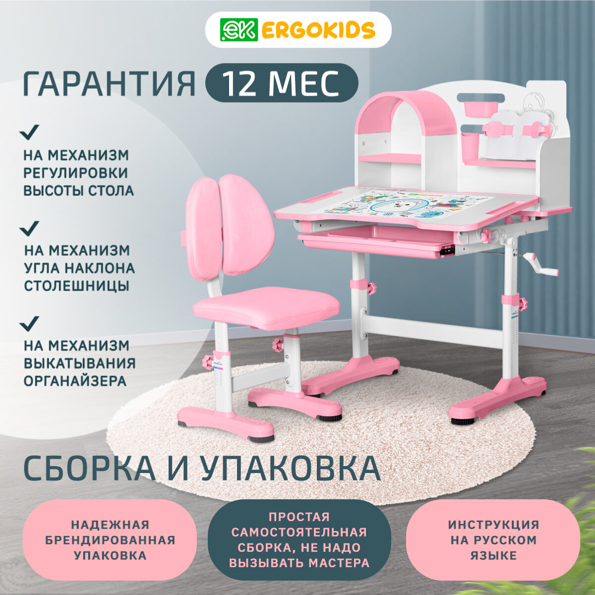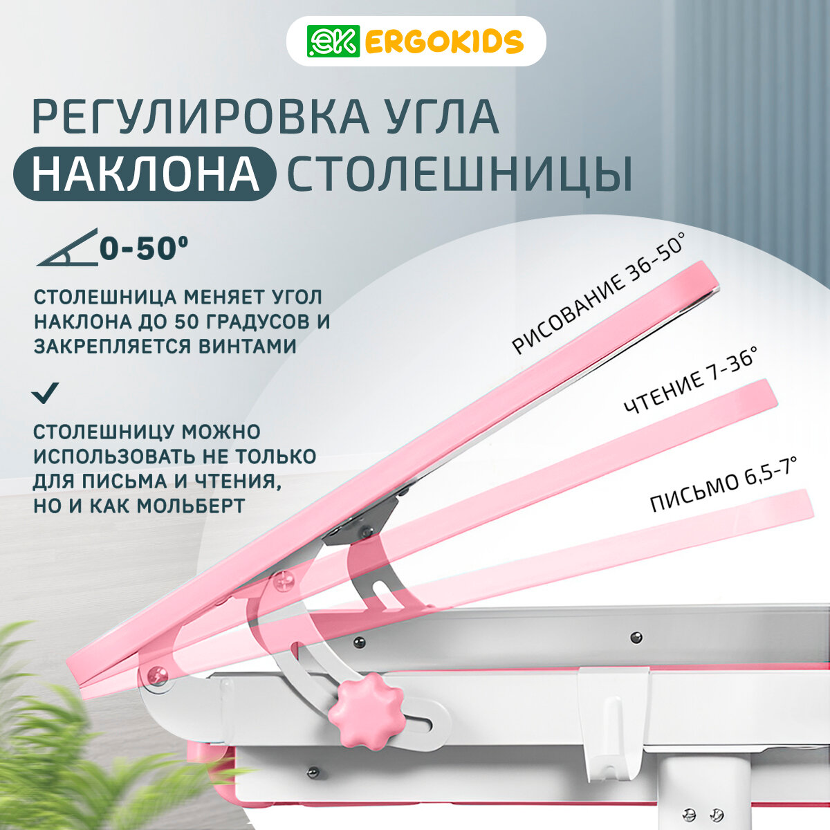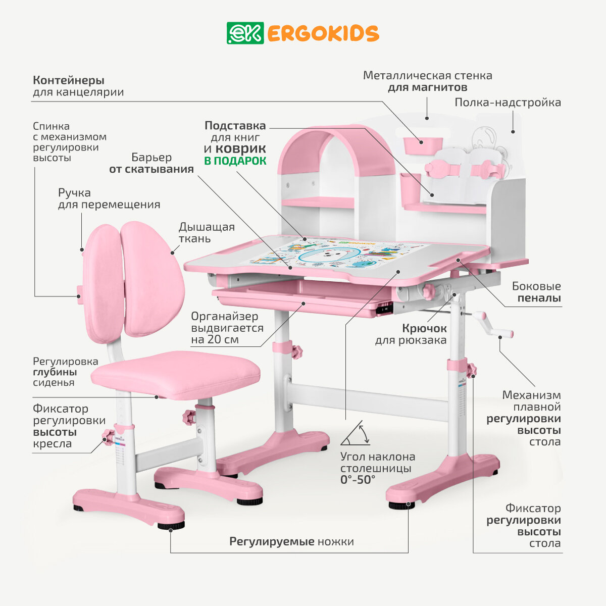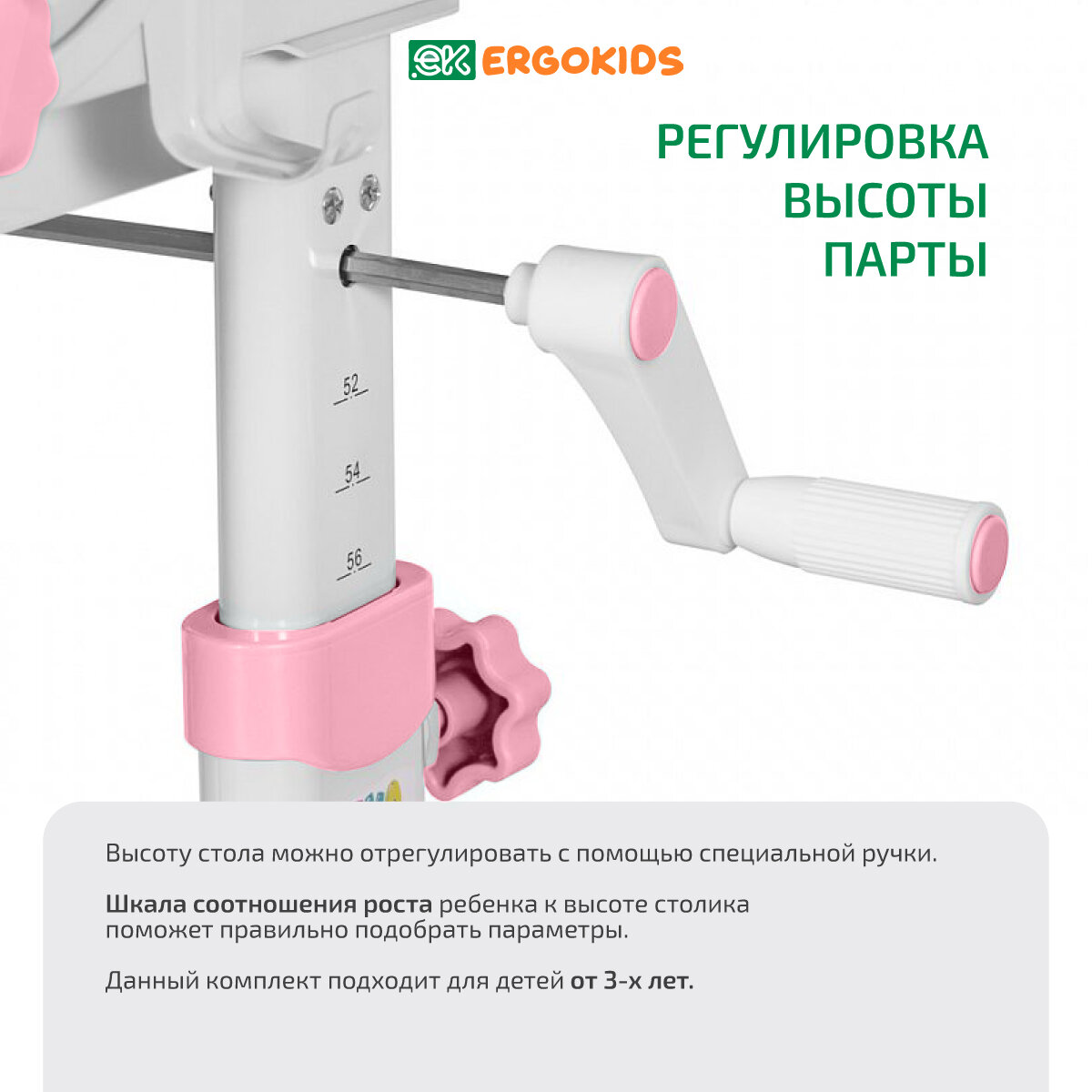Растущий стол парта и стул детский набор Ergokids Fresco XL BD-33 розовый интересное: