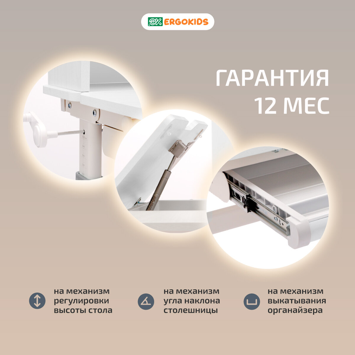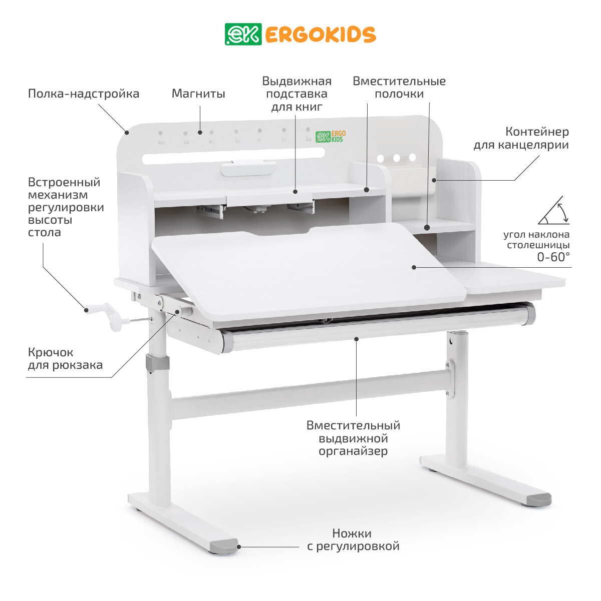 Детский письменный стол растущая парта с газлифтом Ergokids Argo, цвет белый/серый интересное: