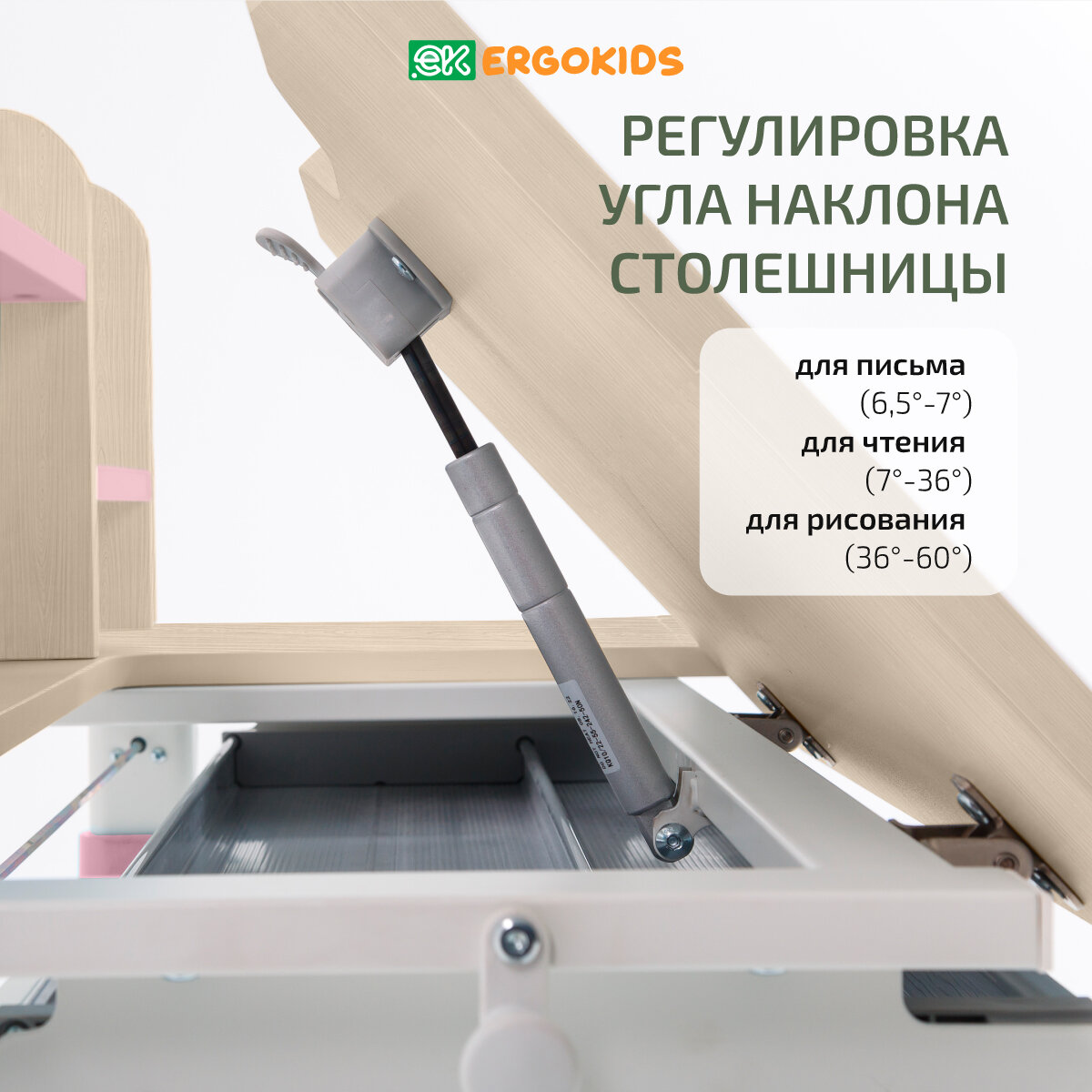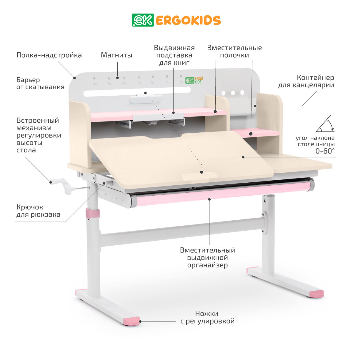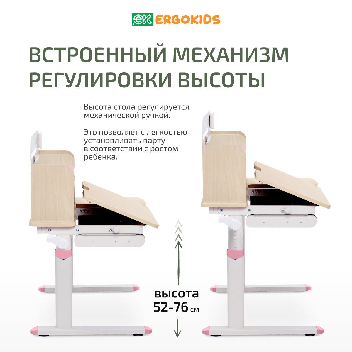Детский письменный стол растущая парта Ergokids Argo дерево/розовый интересное: