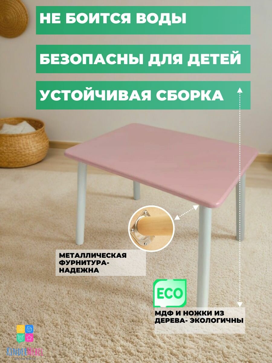 Купить KinderMebel, Стол детский розовый с белыми ножками