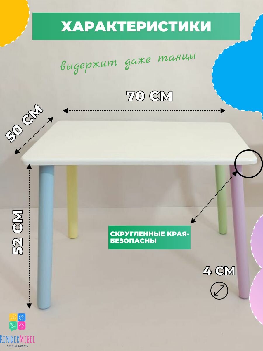 СохранитьKinderMebel, Стол детский белый с цветными ножками интересное: