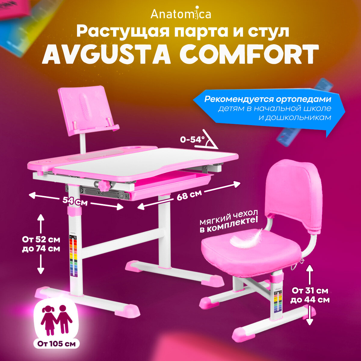 Комплект парта и стул Anatomica Avgusta Comfort белый/розовый интересное: