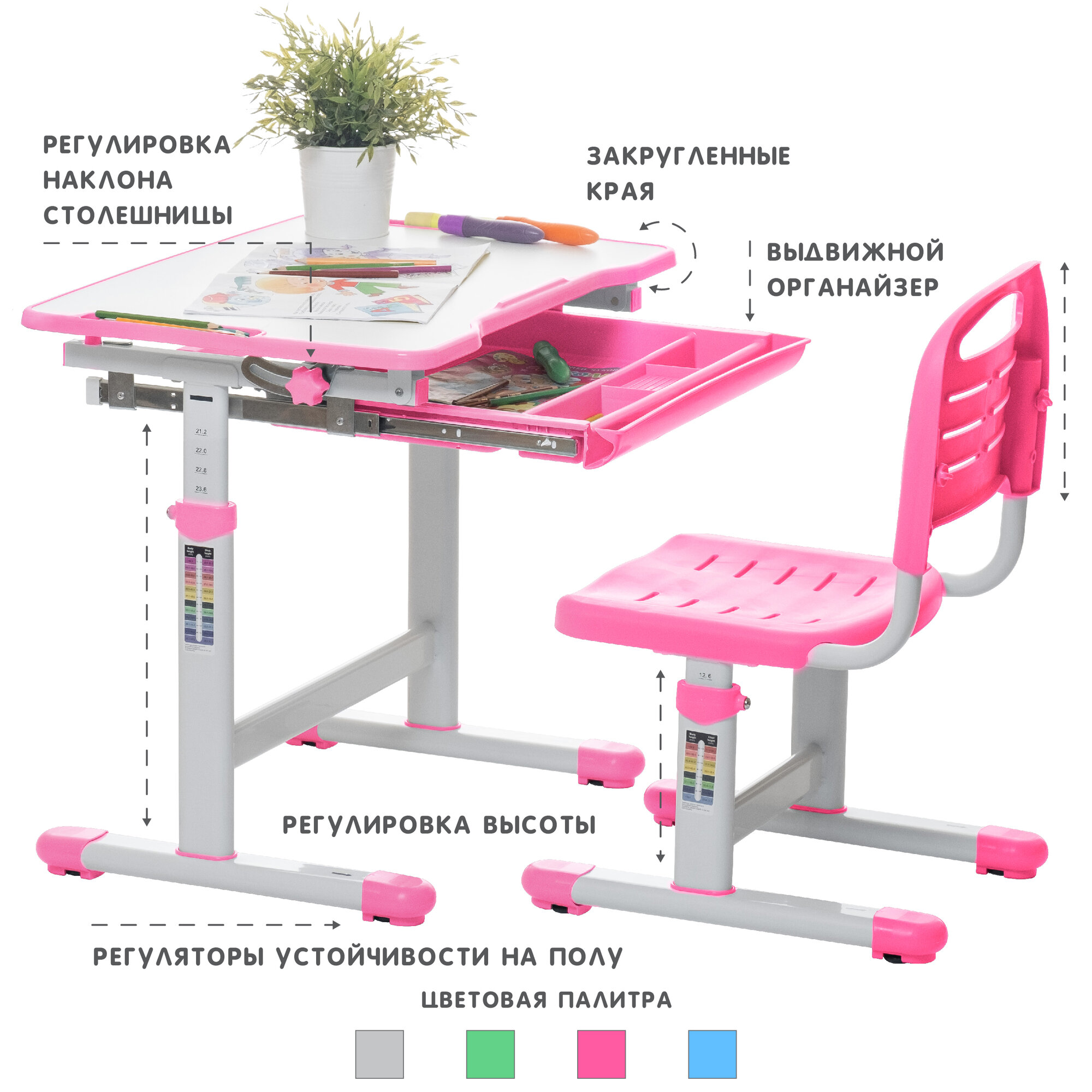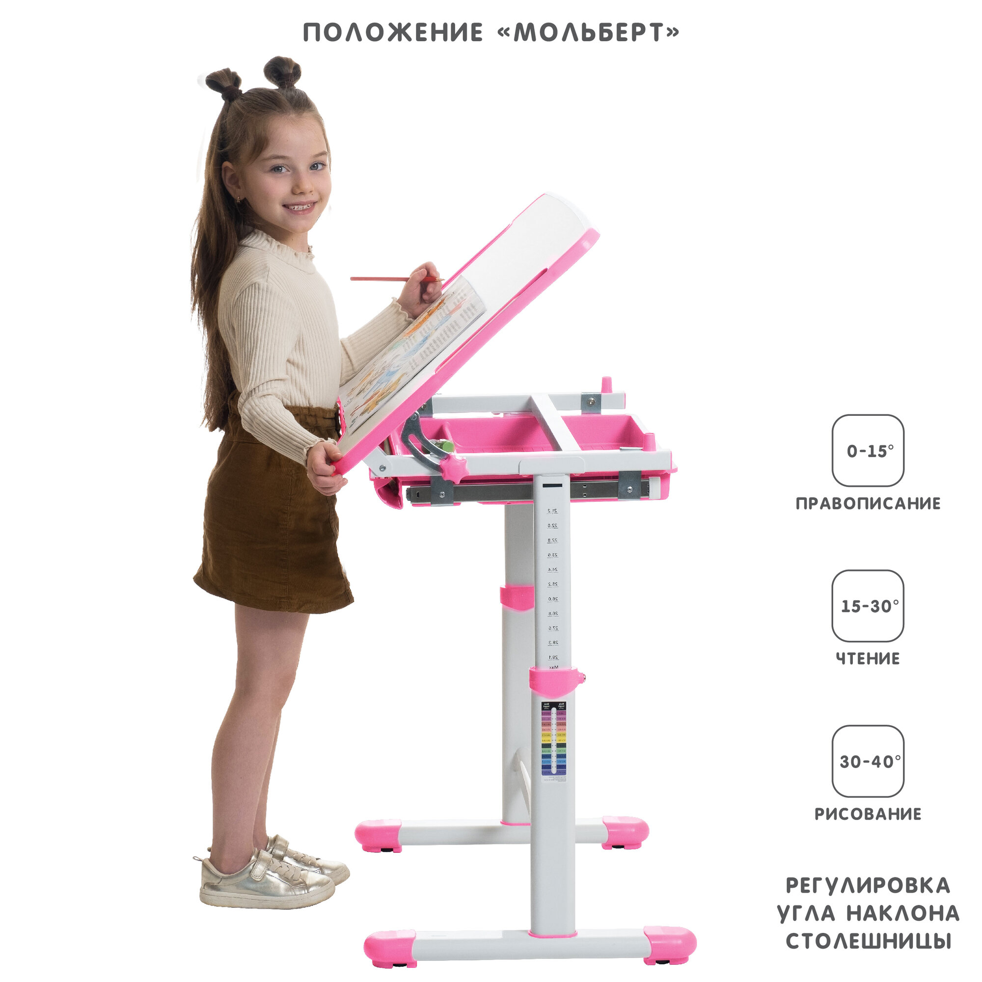 Комплект для дома и школы: Растущая детская парта для школьника с лотком и стул с уникальной регулировкой SET HOLTO-2A интересное:
