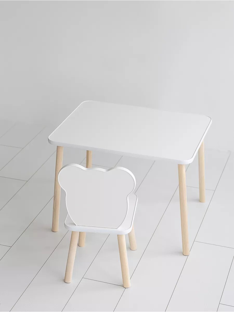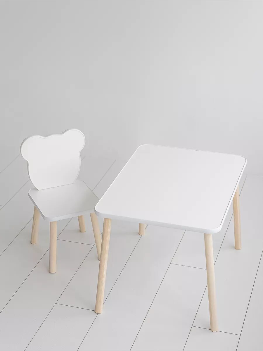 Купить Набор детской мебели "Стол Прямоугольный и стул Мишка" от Мастерская Теремок, белый, классический стиль, ЛДСП
