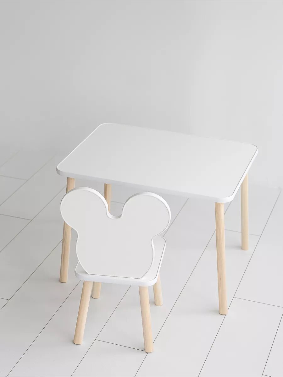 Купить Набор детской мебели "Стол Прямоугольный и стул Микки" от Мастерская Теремок, белый, классический стиль, ЛДСП