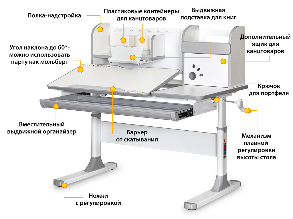 Растущая парта для школьника Rumbik Smart серая, детский деревянный письменный стол с регулировкой высоты