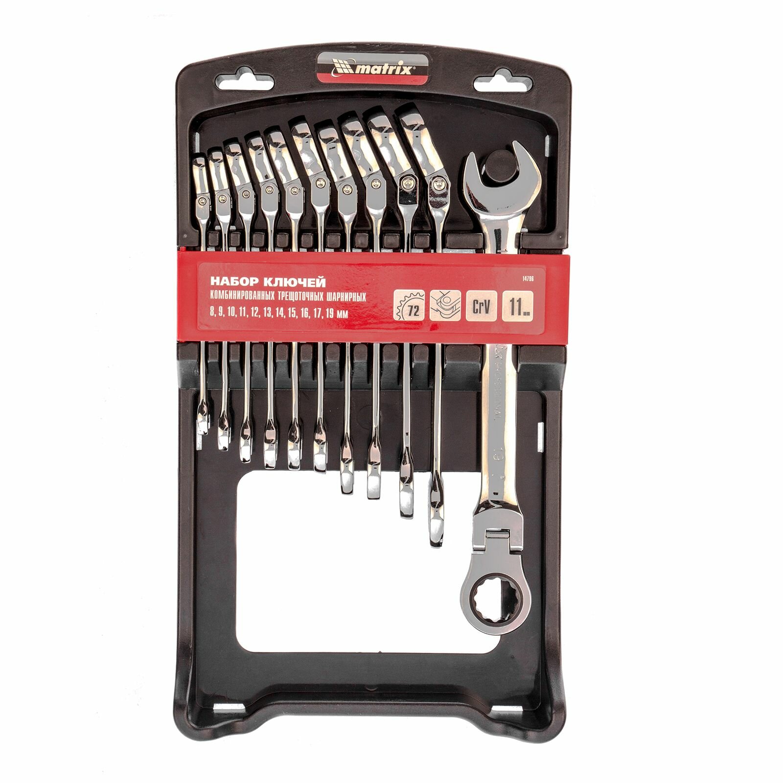 Набор комбинированных трещоточных шарнирных ключей MATRIX 11 шт. 14796