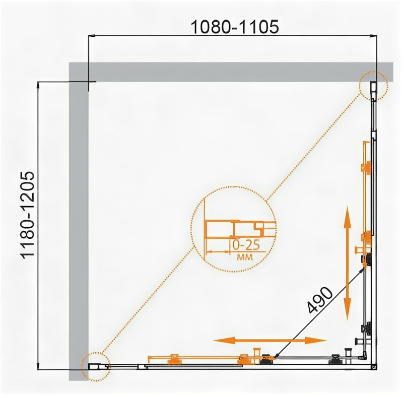 Душевой уголок CEZARES MOLVENO-AH-22-120/110-P-Cr угловой