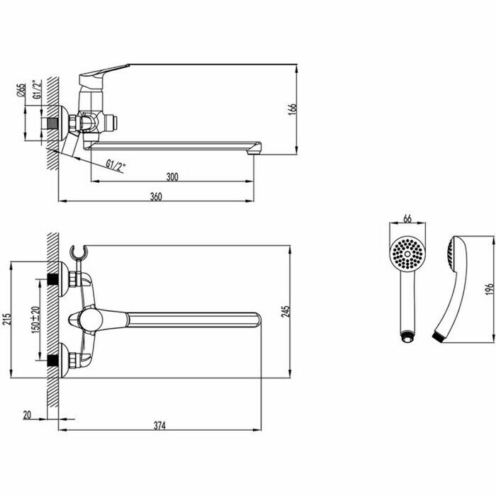 | Комплектация | Смеситель / лейка / душевой шланг / присоединительная группа для вертикального крепления |