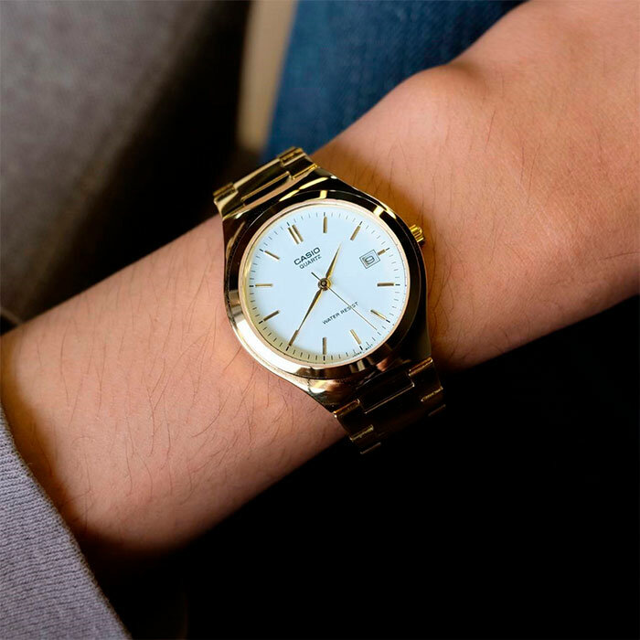 MTP-1170N-7A Casio наручные часы кварцевые WR30 (3 атм) мужские золотой, белый отображение числа минеральное стекло