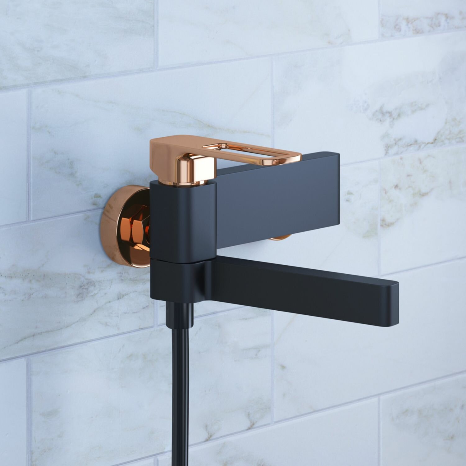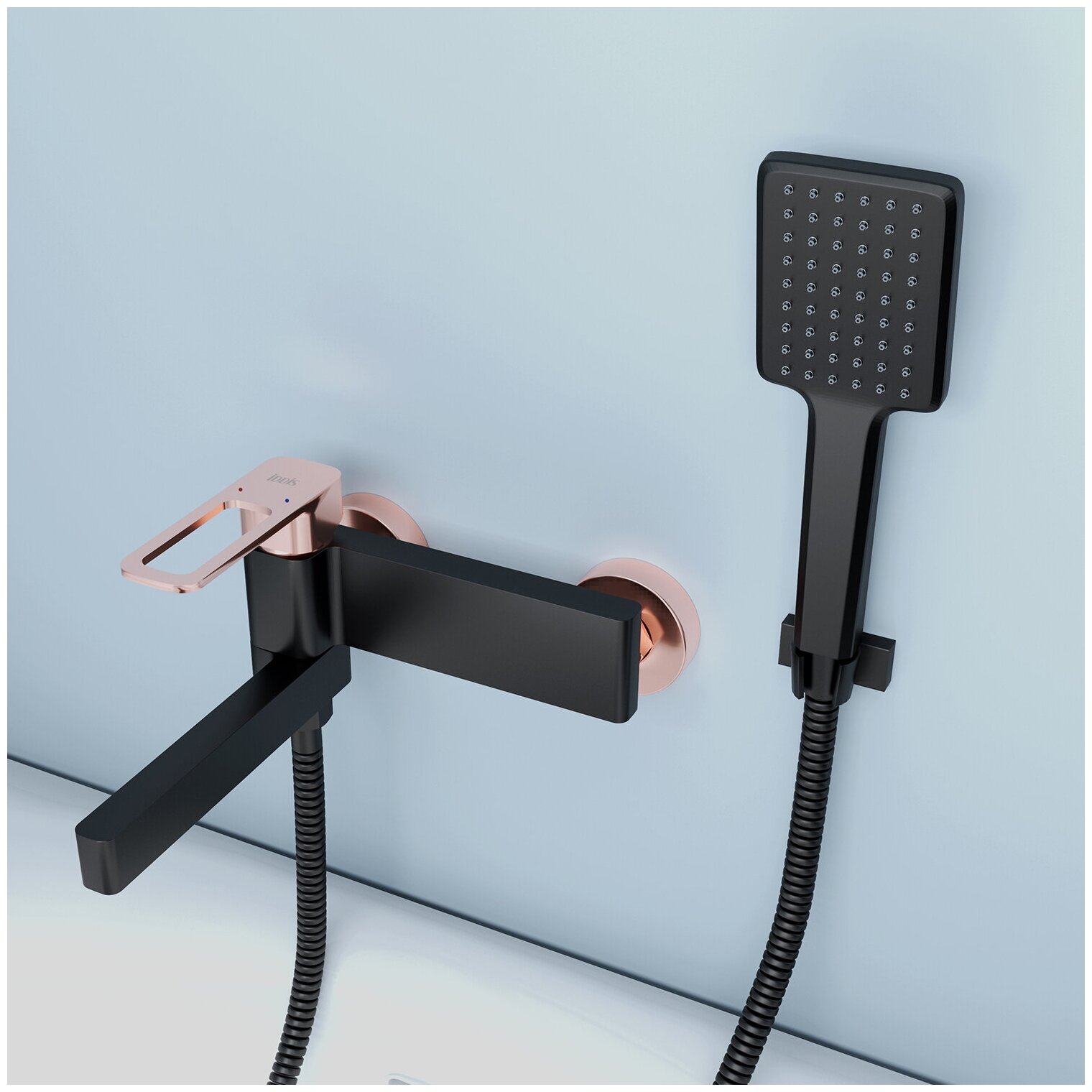 Смеситель для ванны/душа IDDIS Slide с поворотным изливом, однорычажный, черный/розовое золото SLIBG00i02