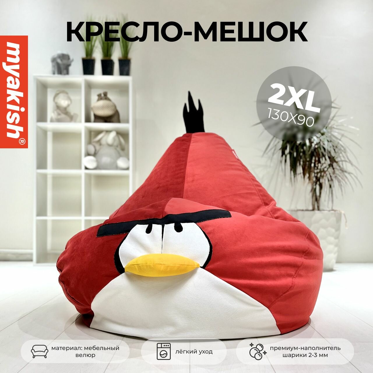 Кресло мешок груша велюр "Энгри Бёрдс" XXL Myakish интересное: