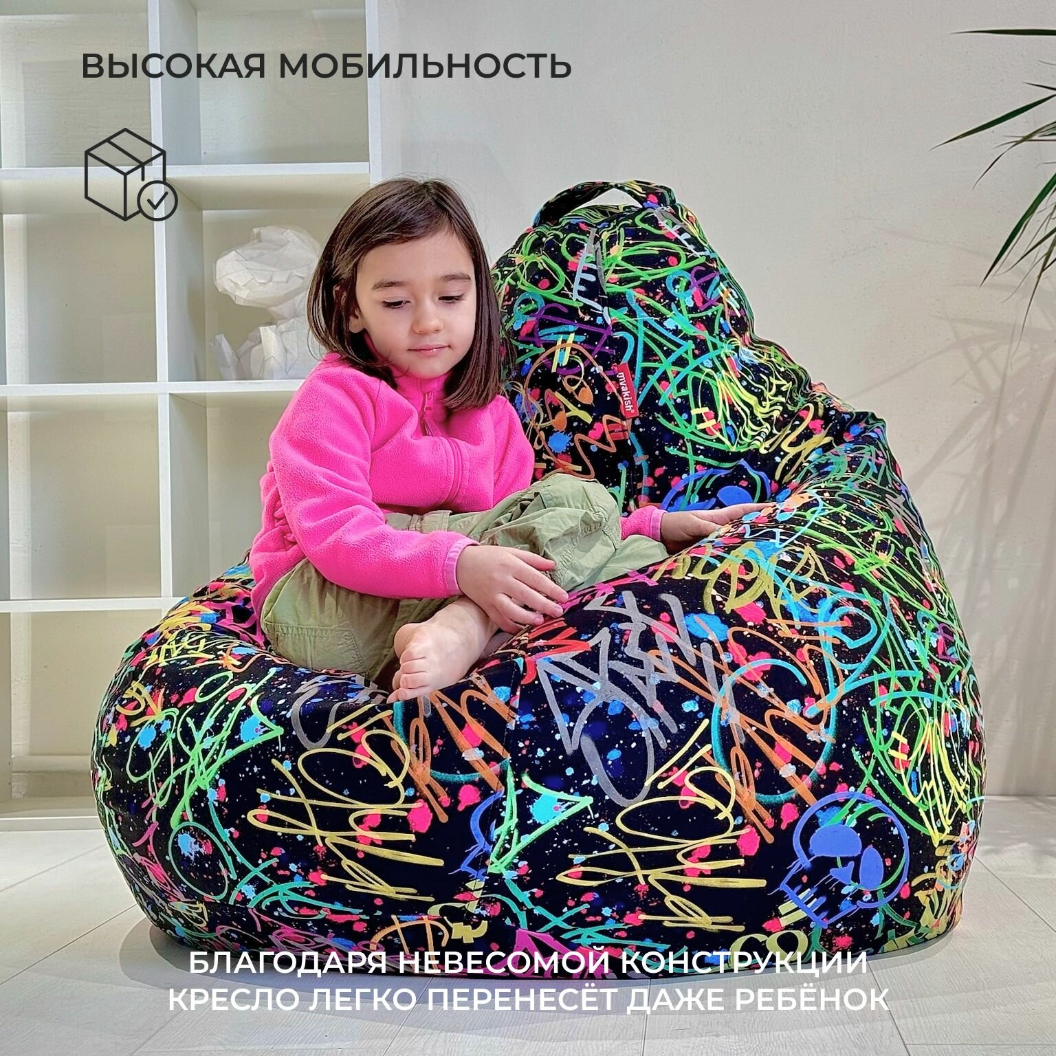 СохранитьКресло-мешок Myakish "Граффити", форма груша, велюр, цвет темно-серый, XL, 200л интересное: