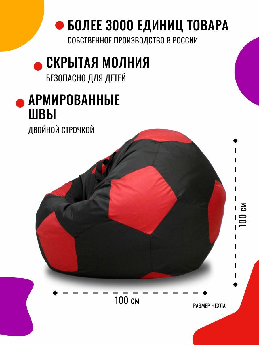 Купить Кресло-мешок Мяч PUFON размер 3XL, Комфорт красно/черный, дюспо