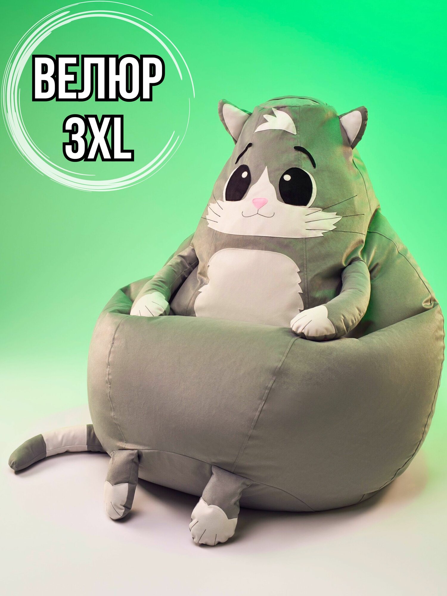 Кресло-мешок игрушка Кот 4XL из мебельного натурального велюра, кресло груша XXXXL