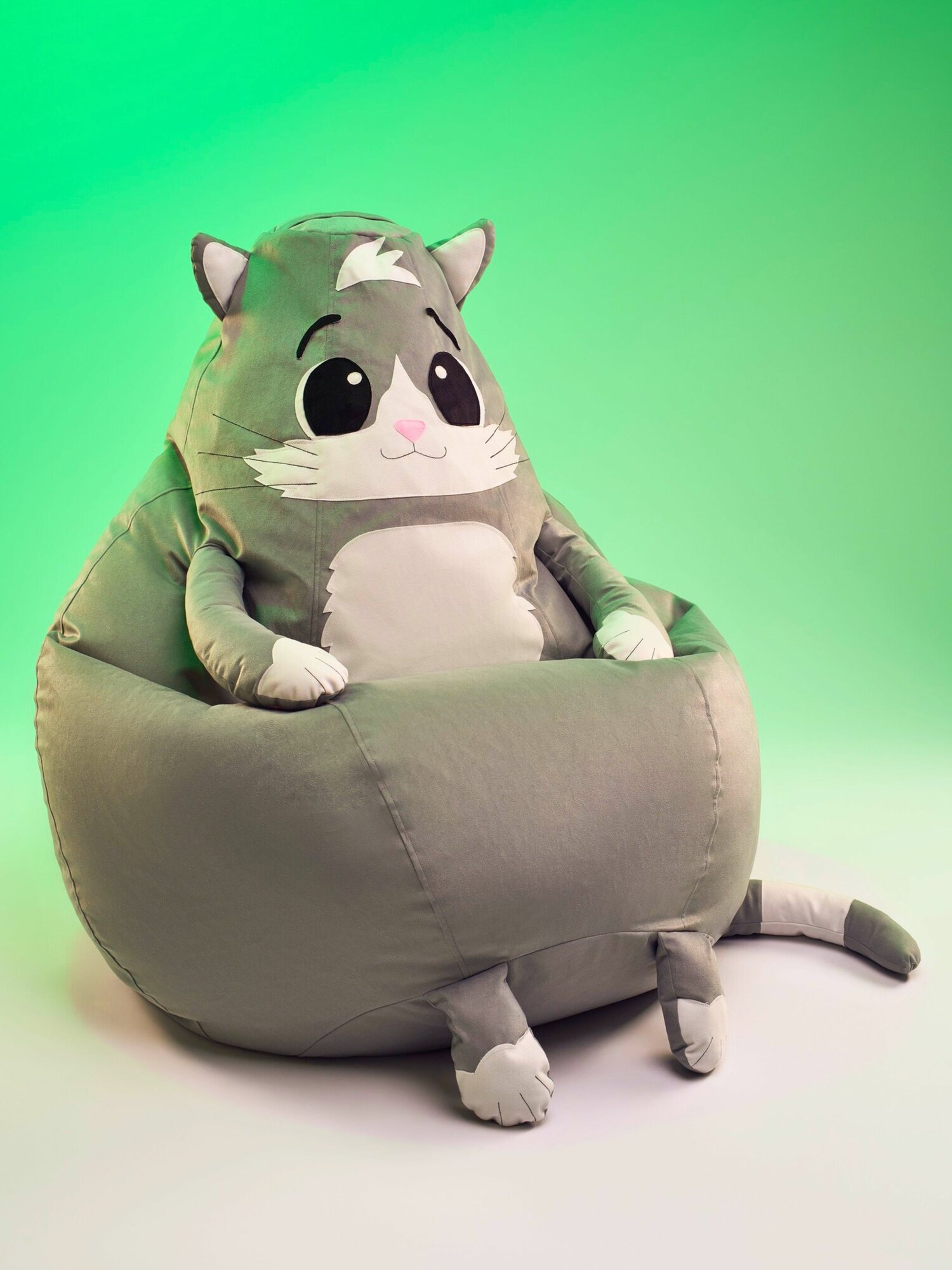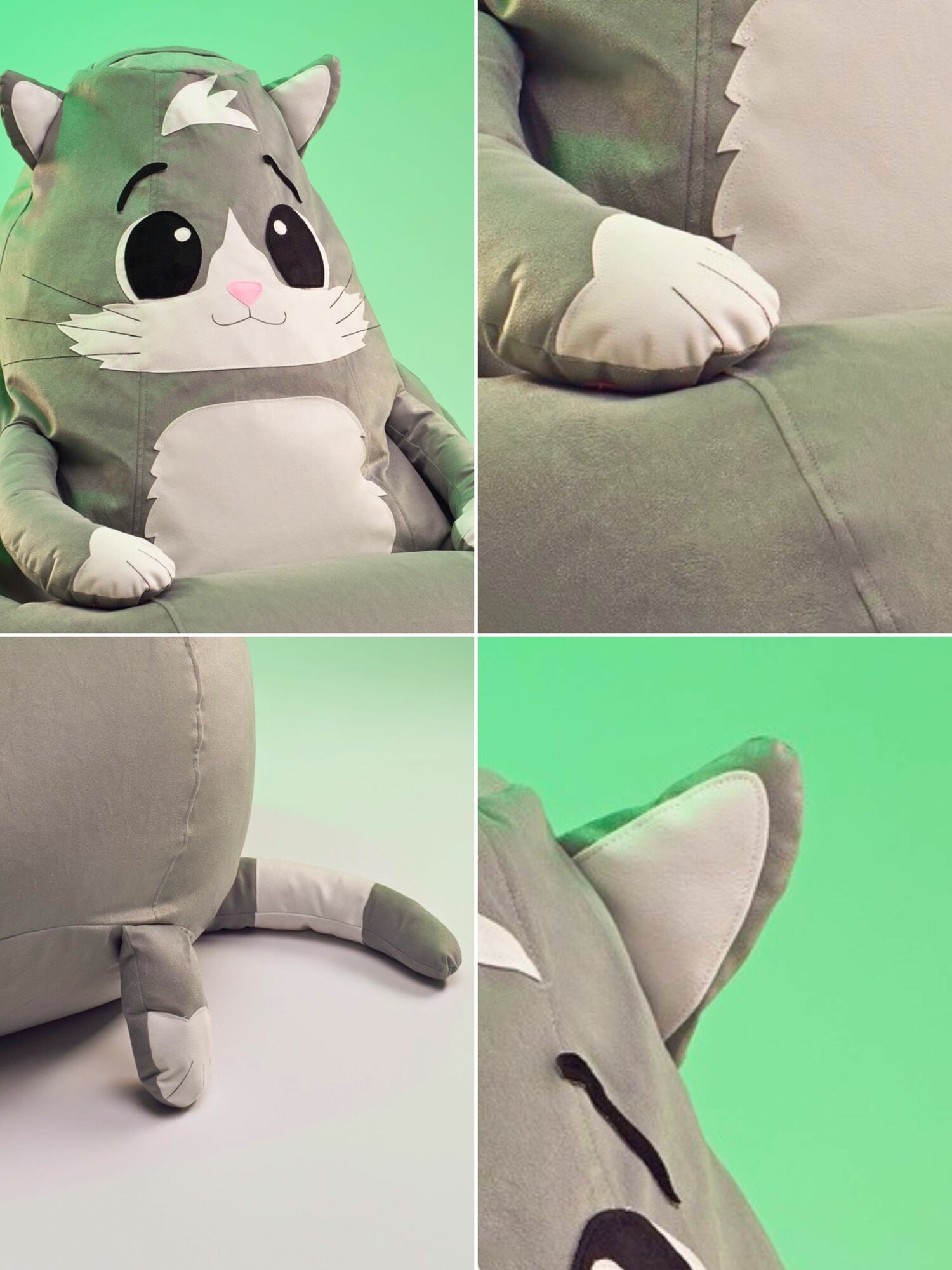 Кресло-мешок игрушка Кот 4XL из мебельного натурального велюра, кресло груша XXXXL