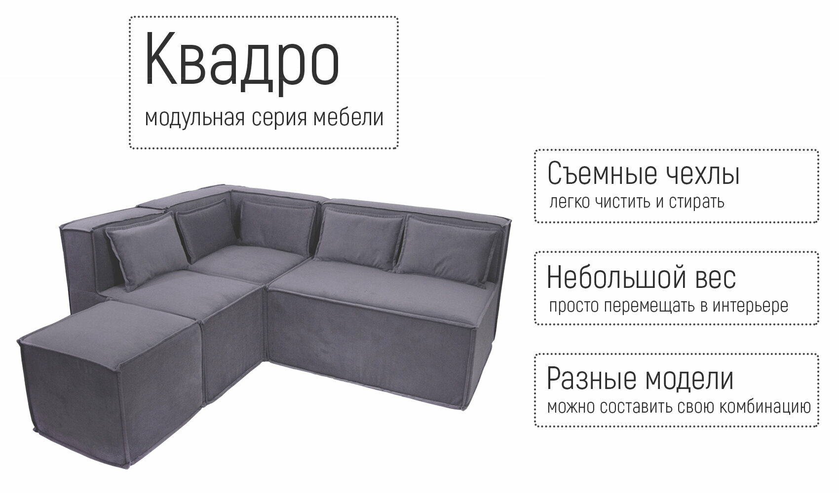 Пуф кресло бескаркасное КВАДРО модульное на балкон террасу веранду лоджию игровую холл коридор поролон велюр серый интересное: