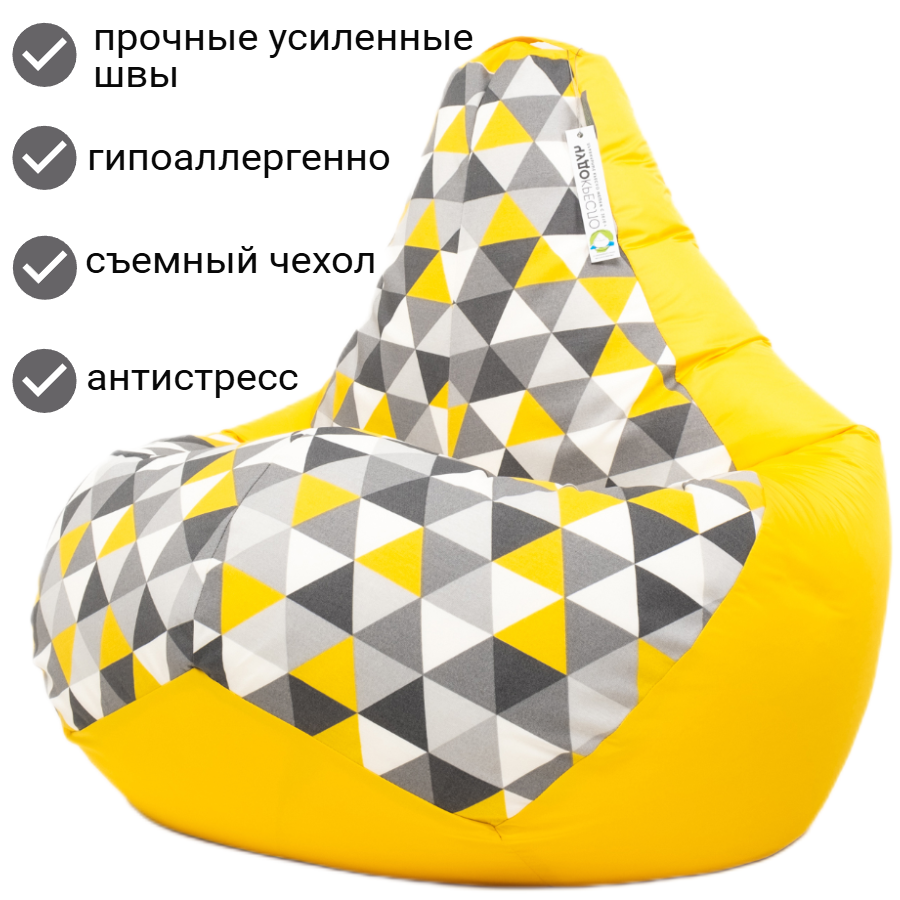 Купить Кресло мешок груша Ромбус желтый 140х90 размер XXXL, Чудо Кресло, Хлопок Оксфорд, ручка, люверс, молния, пуфик мешок