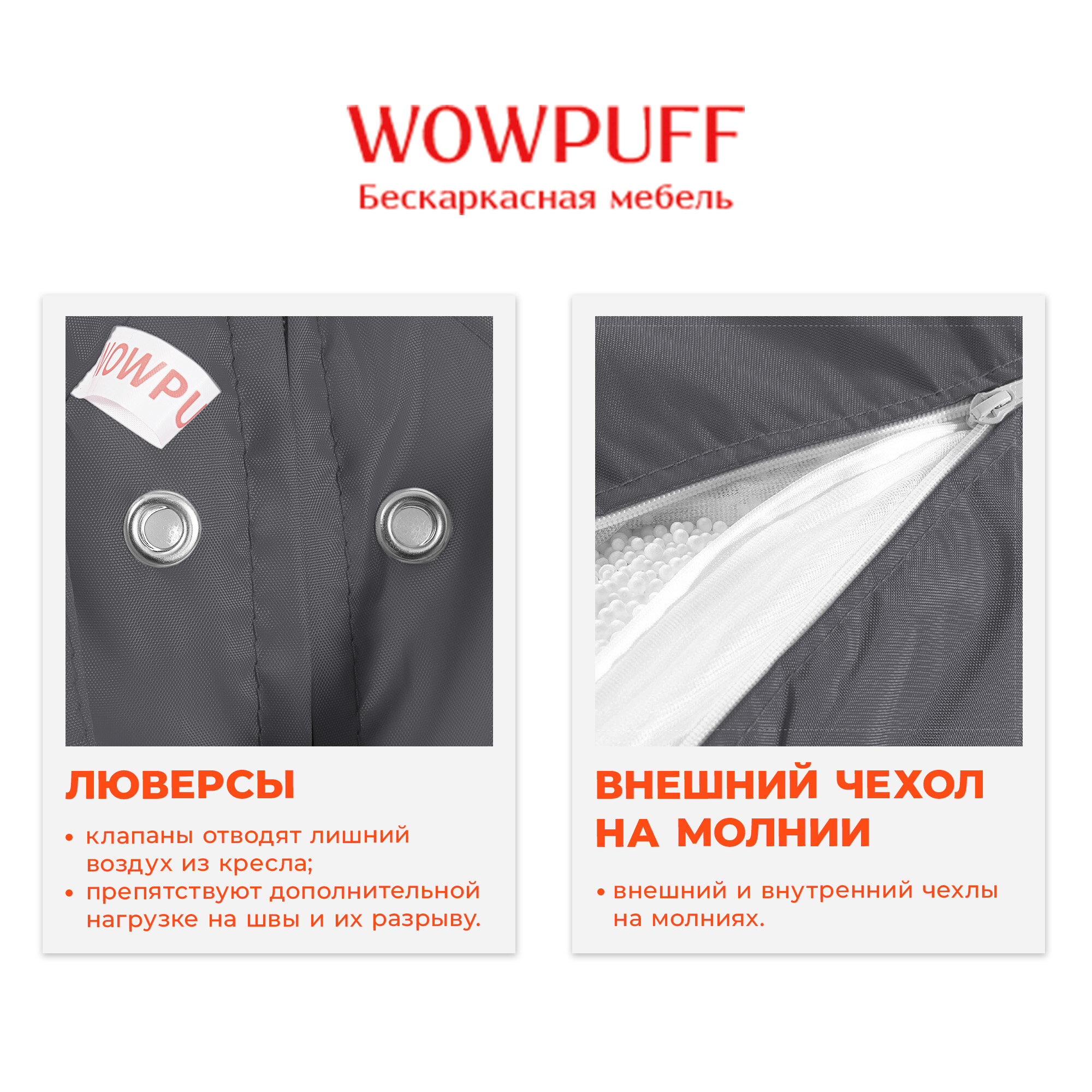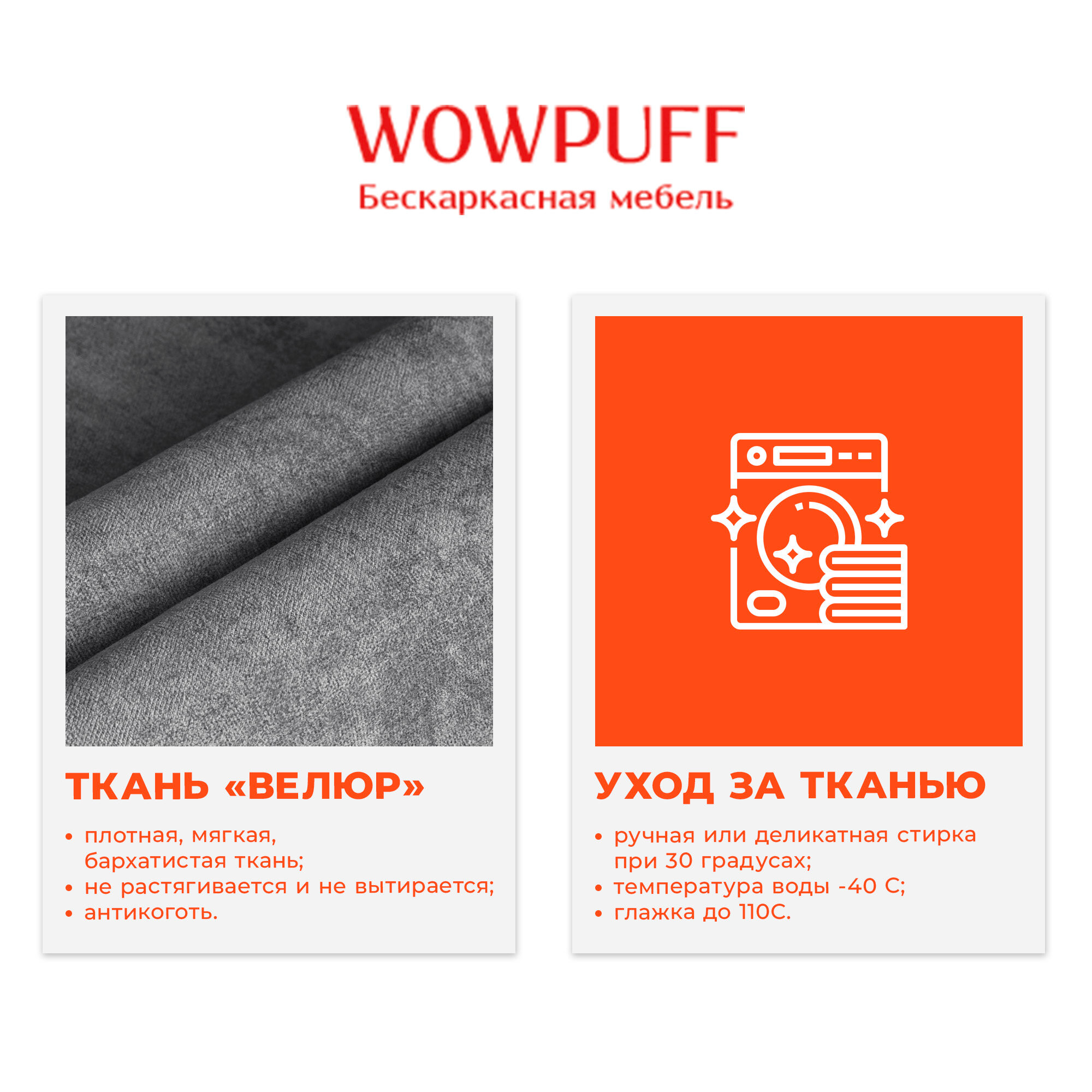 Кресло-мешок игровое WOWPUFF "МАКСИ", XXXXXL, велюр, цвет графит, съемный чехол интересное: