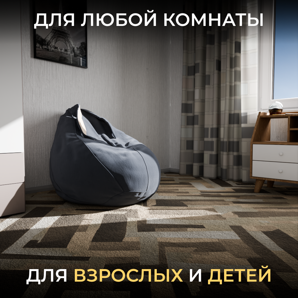 Кресло-мешок с ушками "Банни" для детей, серый, велютта 32 размер XXL. Для детской, гостиной