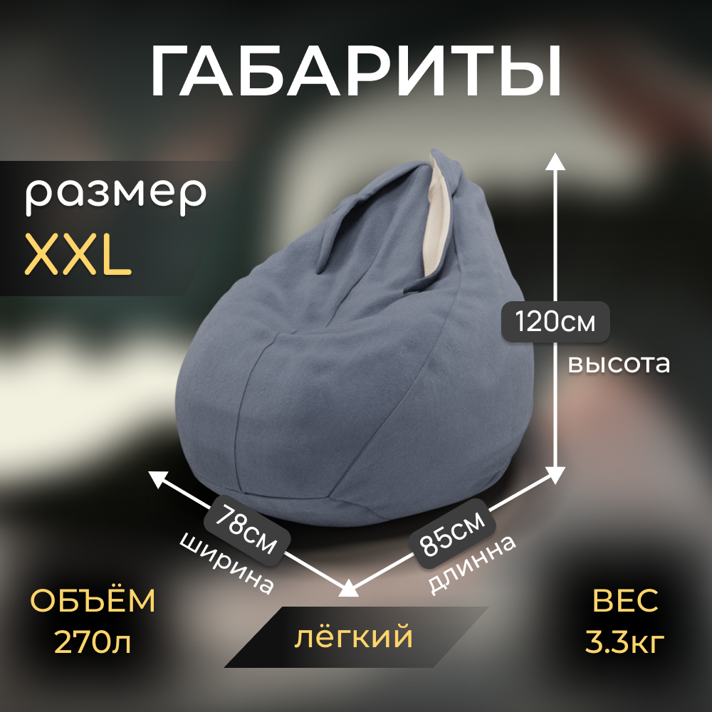 Кресло-мешок с ушками "Банни" для детей, синий, велютта 26 размер XXL. Для детской, гостиной