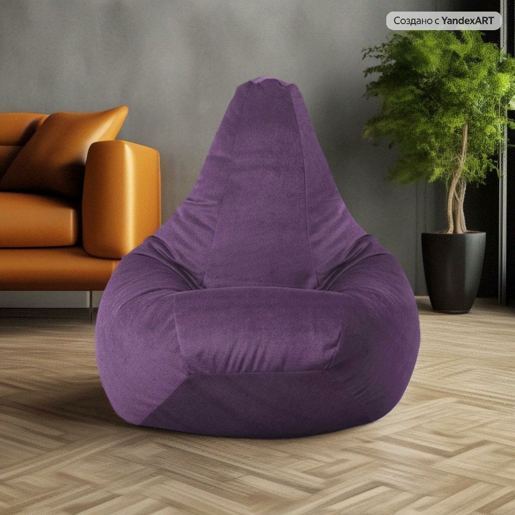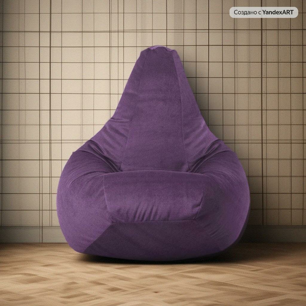Кресло мешок Груша Велюр фиолетовый 140х90 размер XXXL, Чудо Кресло, ручка, люверс, молния, пуф мешок интересное: