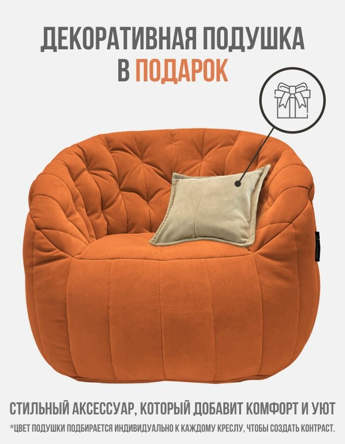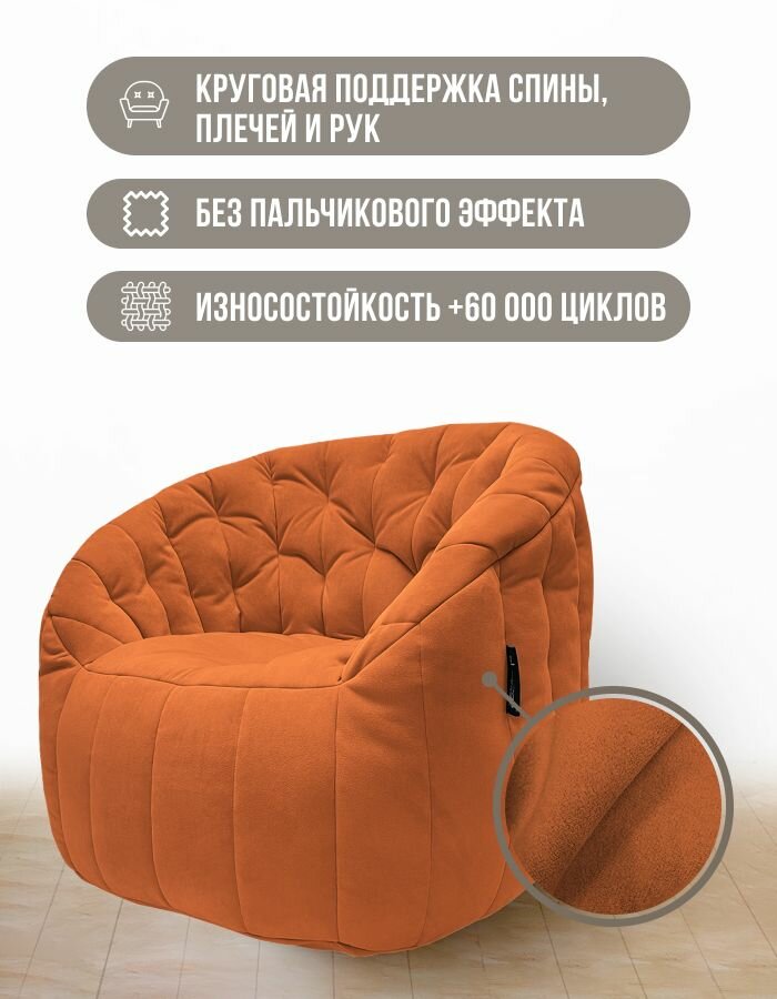 Современное кресло для отдыха aLounge - Tranquility Armchair - Terra Cocta (велюр, терракотовый) - бескаркасная мягкая мебель в гостиную, спальню, зону ожидания