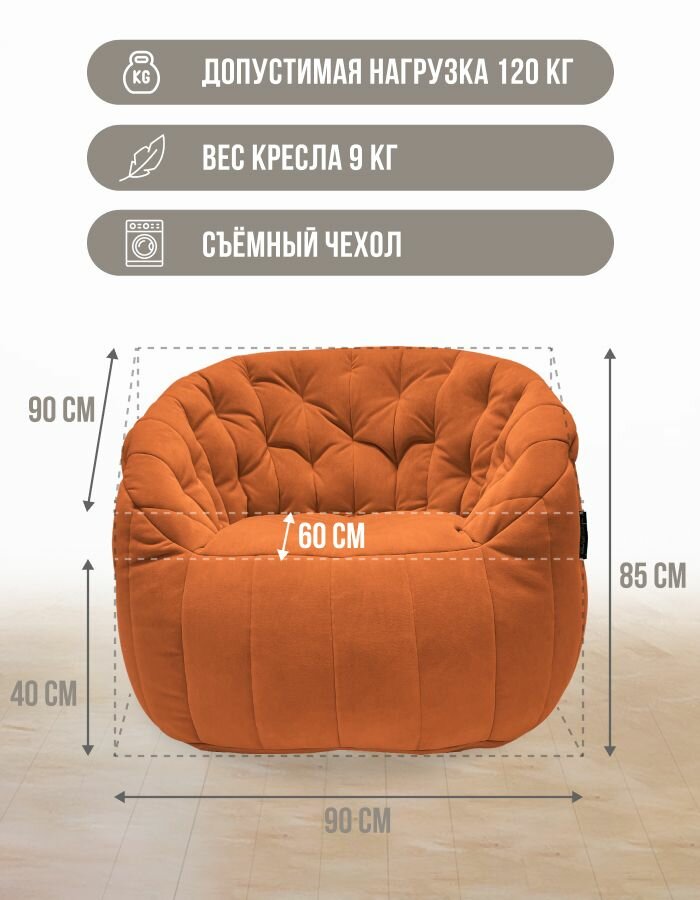 Бескаркасное кресло для отдыха с оттоманкой aLounge - Acoustic Lounge - Terra Cocta (велюр, терракотовый) - лаунж мебель в гостиную, спальню, детскую, офис, на балкон