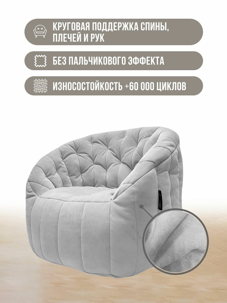 Современное кресло для отдыха aLounge - Tranquility Armchair - Tundra Spring (велюр, светло-серый) - бескаркасная мягкая мебель в гостиную, спальню, зону ожидания