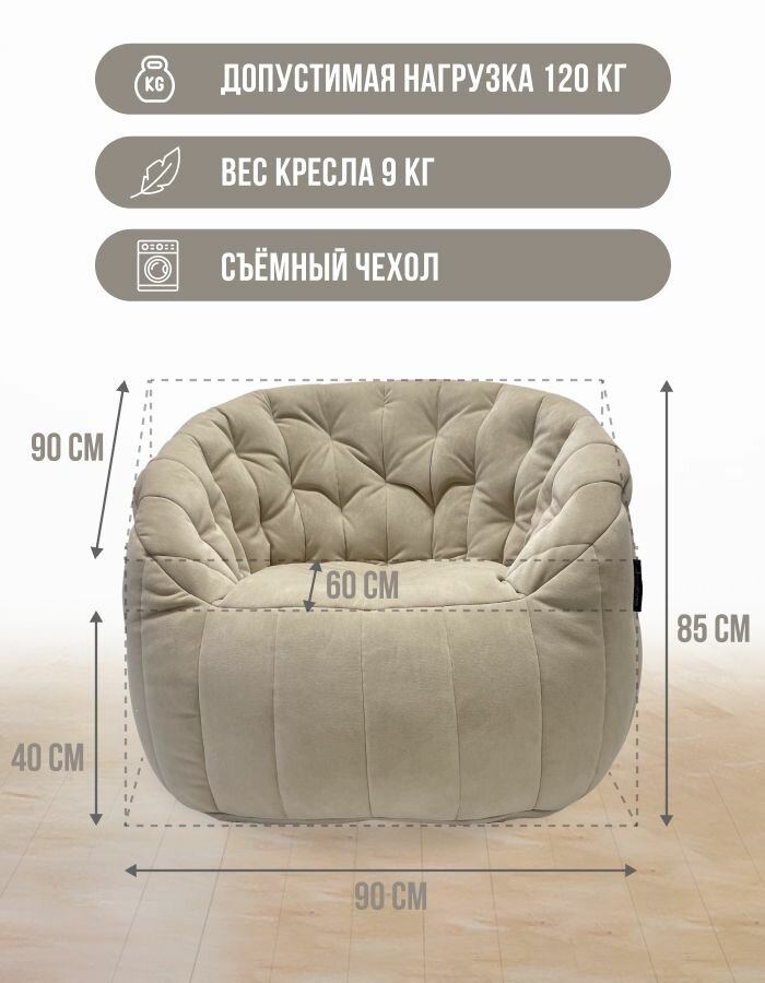 Современное кресло для отдыха aLounge - Tranquility Armchair - Eco Weave (велюр, бежевый) - бескаркасная мягкая мебель в гостиную, спальню, зону ожидания