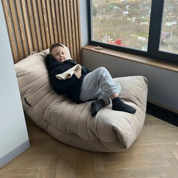 Кресло-мешок Груша, Puff Daddy, Бежевый Велюр, XXXXXL, 350 литров, КОМФОРТ, пуф, кресло, бескаркасная мягкая мебель