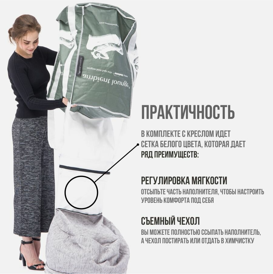 Бескаркасное кресло для отдыха с оттоманкой aLounge - Acoustic Lounge - Luscious Grey (велюр, темно-серый) - лаунж мебель в гостиную, спальню, детскую, офис, на балкон