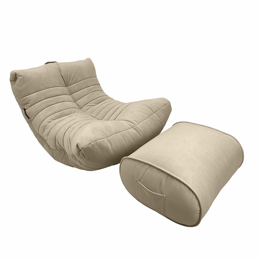 Бескаркасное мягкое кресло с оттоманкой aLounge - Butterfly Sofa Deluxe - Eco Weave (велюр, бежевый) - современная мебель в гостиную, спальню, детскую, офис, на балкон