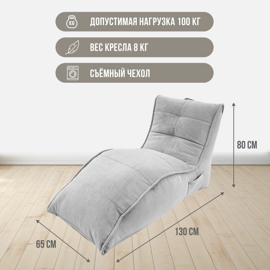 Современное кресло для отдыха aLounge - Tranquility Armchair - Tundra Spring (велюр, светло-серый) - бескаркасная мягкая мебель в гостиную, спальню, зону ожидания
