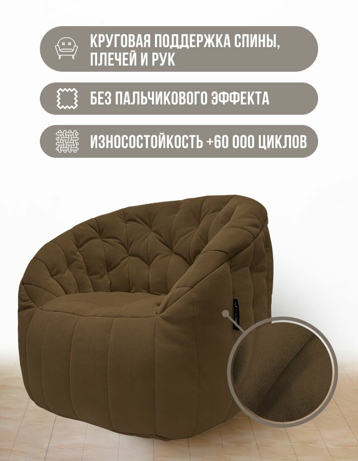 Современное кресло для отдыха aLounge - Tranquility Armchair - Hot Chocolate (велюр, коричневый) - бескаркасная мягкая мебель в гостиную, спальню, зону ожидания