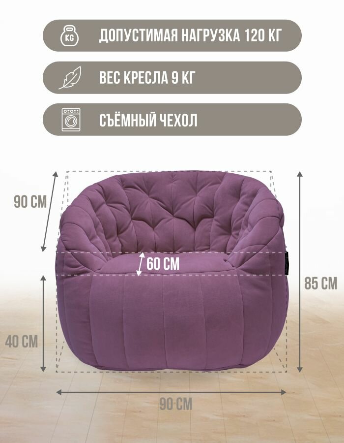 Современное кресло для отдыха aLounge - Tranquility Armchair - Sakura Pink (велюр, фиолетовый) - бескаркасная мягкая мебель в гостиную, спальню, зону ожидания.
